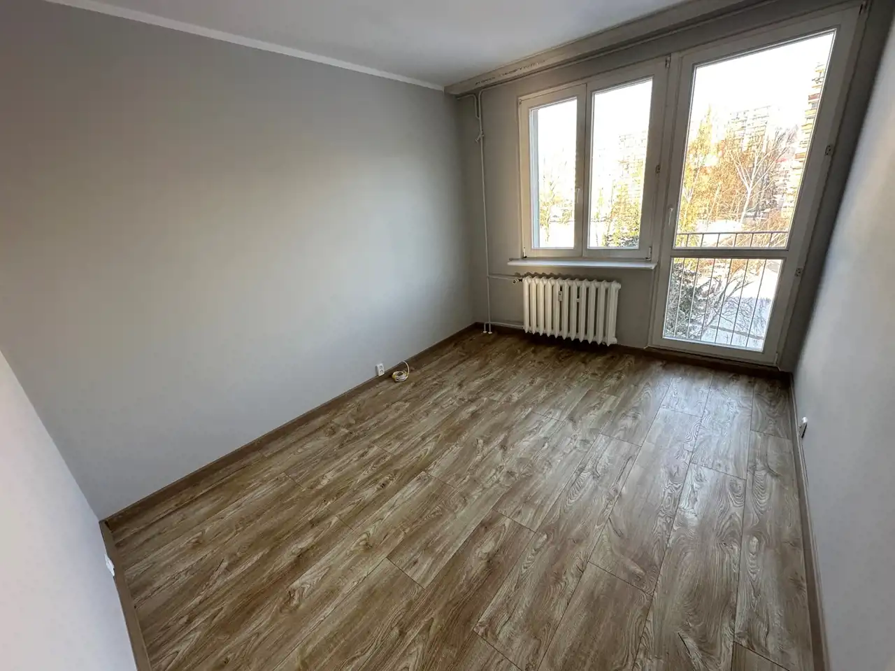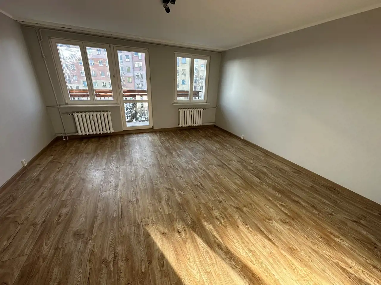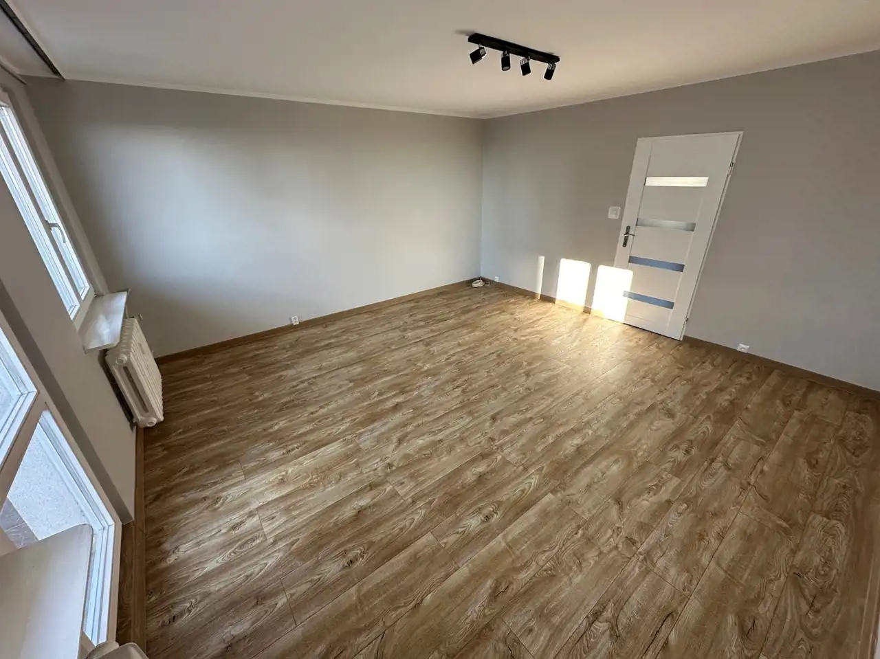 Mieszkanie w tym miesiącu odświeżone z nowymi panelami i drzwiami w całym mieszkaniu.