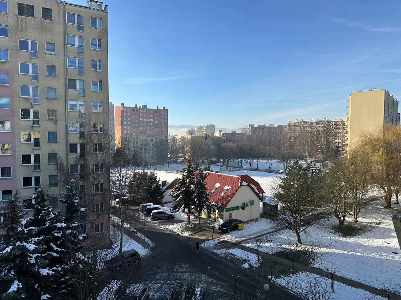 Mieszkanie środkowe, słoneczne, ciepłe, doskonała lokalizacja- w pobliżu sklepy, markety, komunikacja miejska, szkoła, przedszkole, kościół, przychodnie lekarskie, szpital.