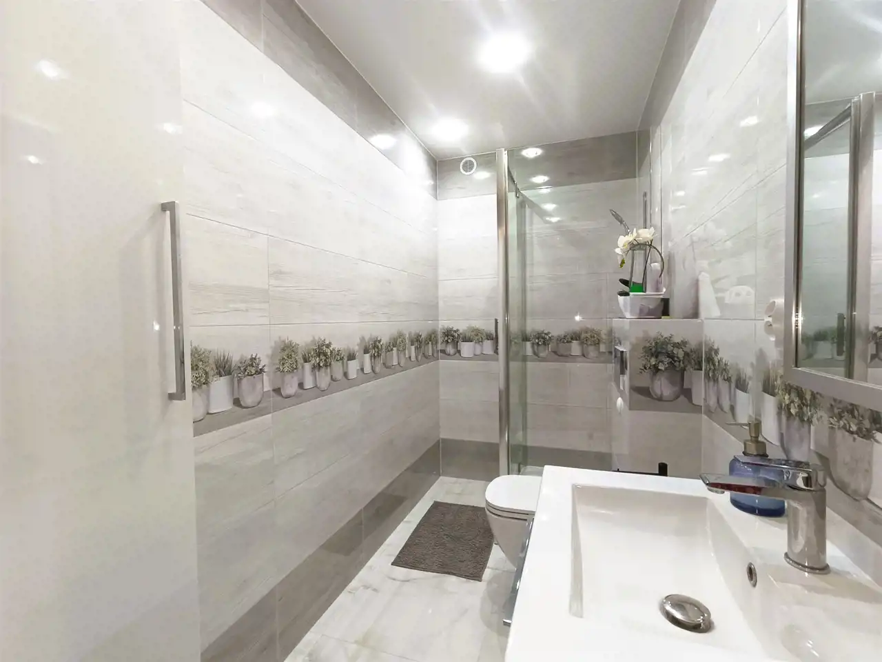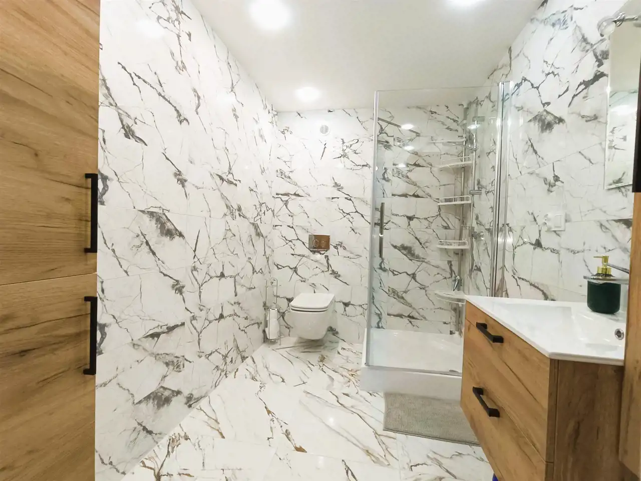 -Duża łazienka z prysznicem, wc oraz umywalką