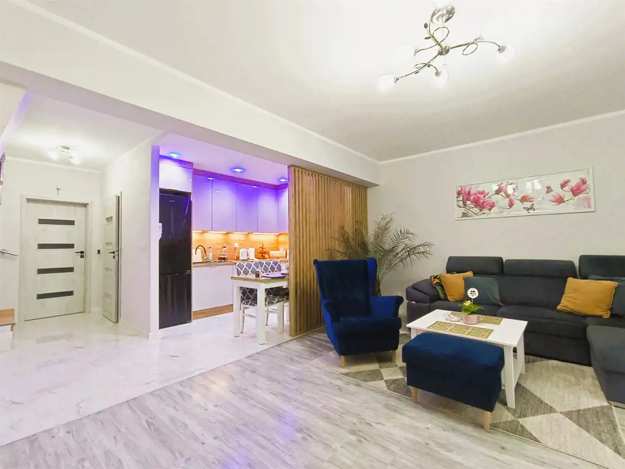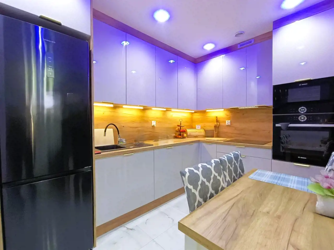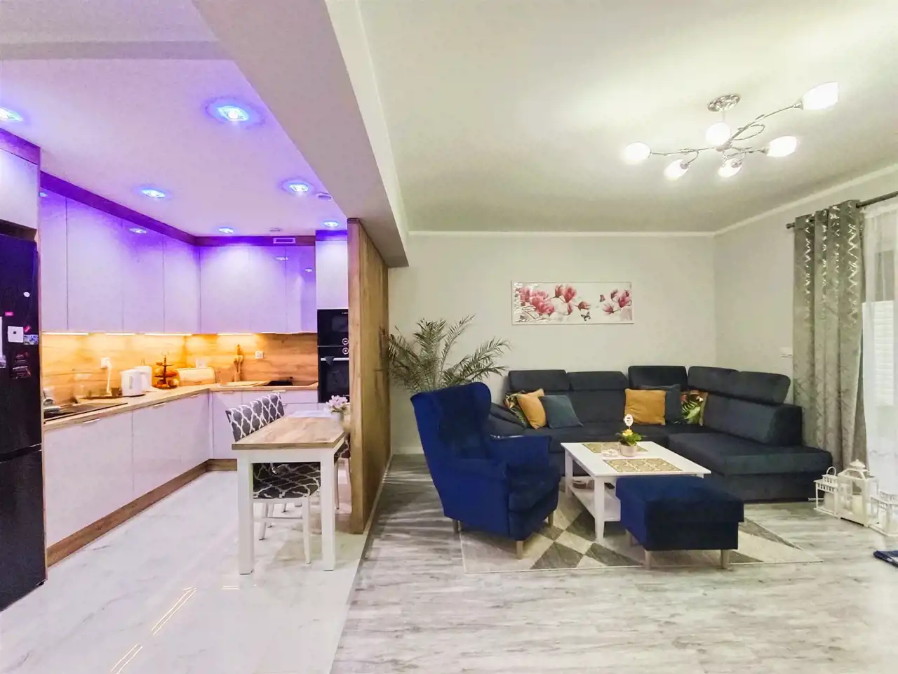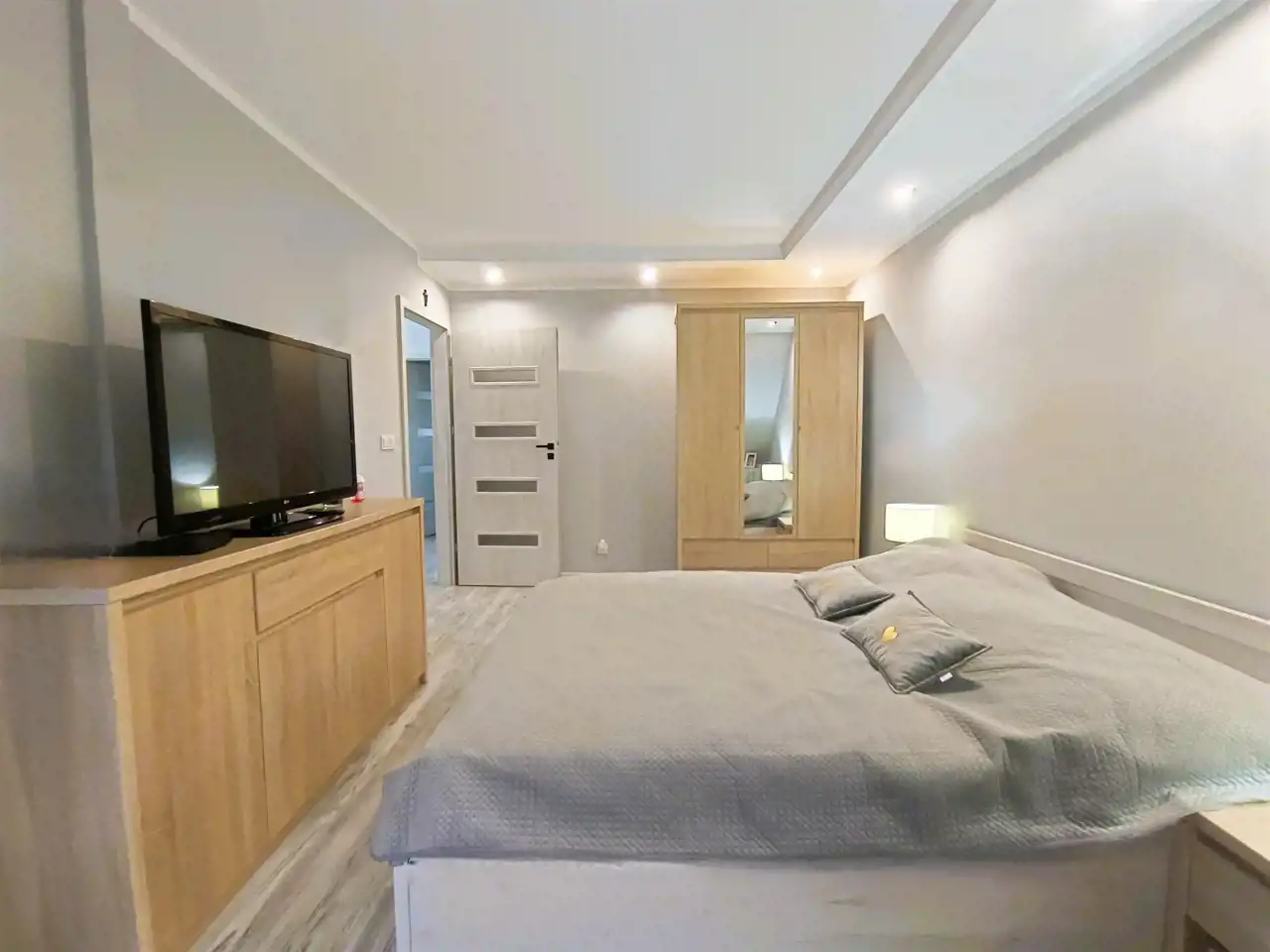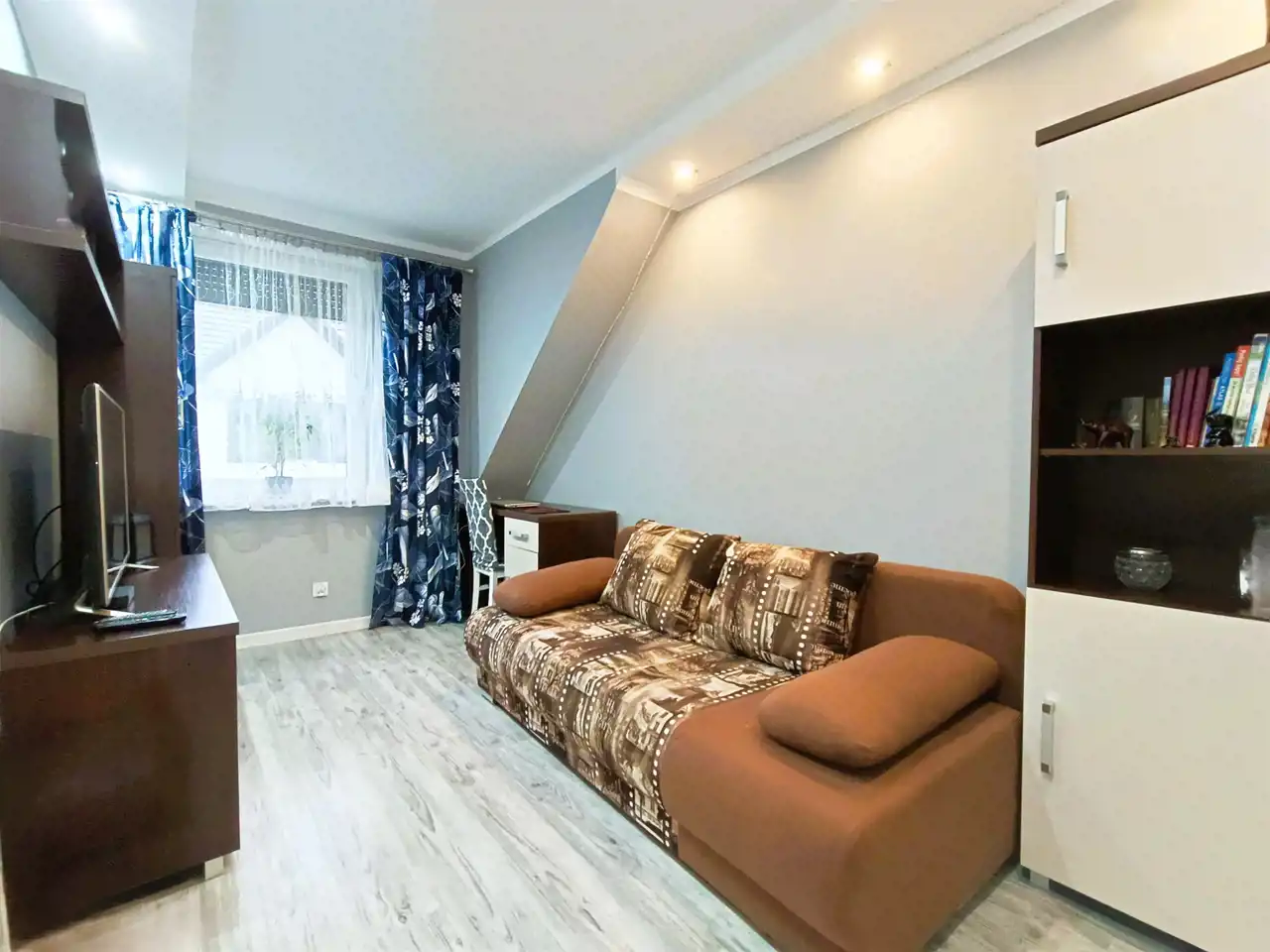 - Część dzienną tworzy przestronny salon połączony z otwartą kuchnią w zabudowie meblowej wraz ze sprzętem AGD dobrej klasy - płyta indukcyjna, piekarnik, mikrofalówka, zmywarka.