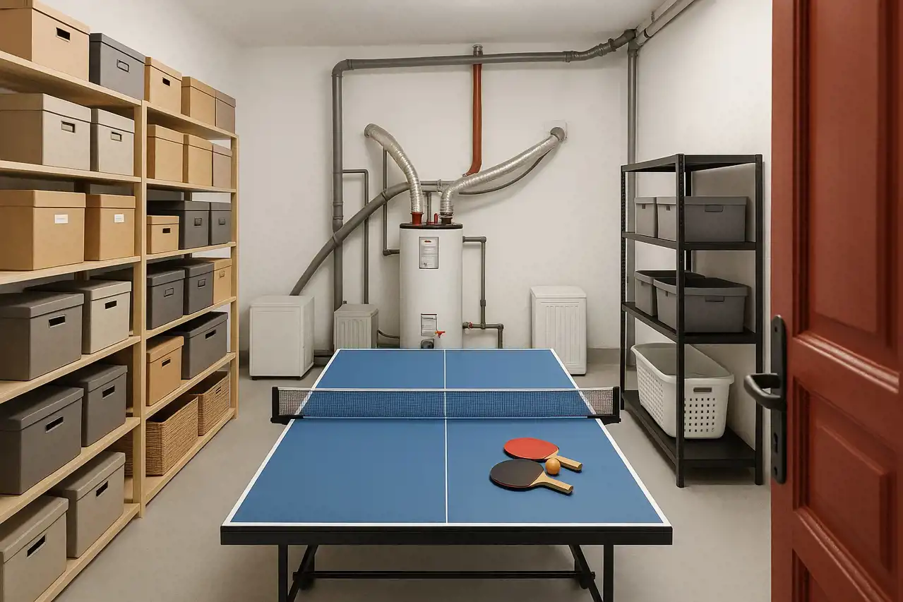 Rozkład domu: na powierzchnię całkowitą domu składają się trzy pełne kondygnację oraz podpiwniczenie.