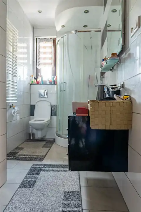 Materiały wykończeniowe – ściany pokryte farbą, lub tynkiem ozdobnym; na podłogach płytki, deska oraz panele