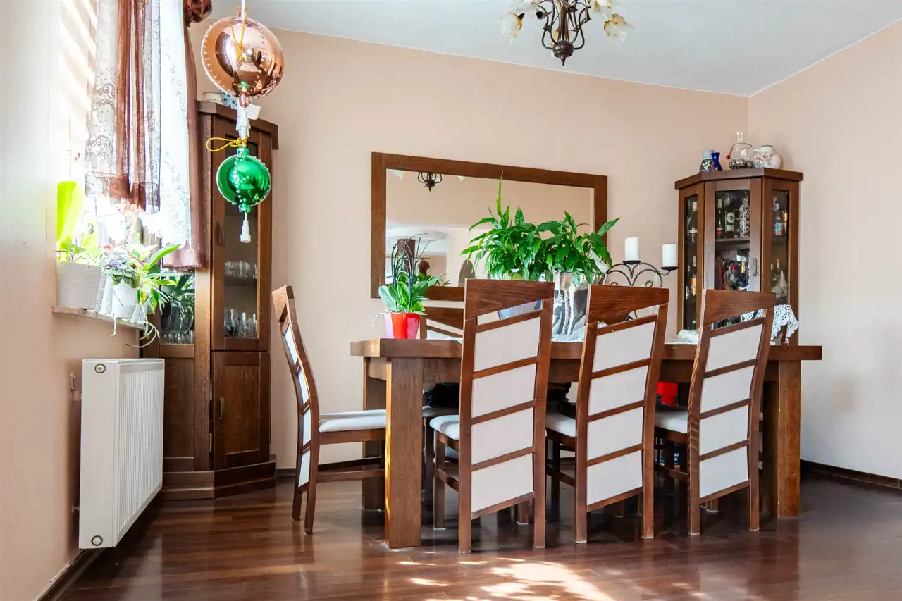 Głównym źródłem ogrzewania jest gaz ziemny (butla na posesji), lecz jest również możliwość korzystania z pieca na paliwo stałe. Dom wykończony jest z materiałów wysokiej jakości a kuty płot od frontu dodaje całej nieruchomości elegancji.