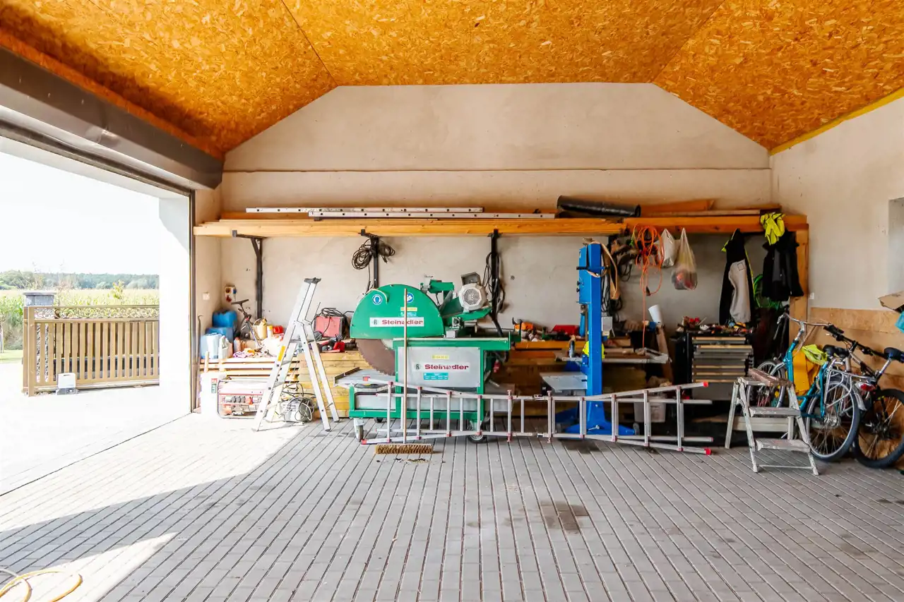 Nowy budynek gospodarczy, który składa się z części usługowej oraz zaplecza socjalnego. Jest to idealne miejsce do prowadzenia działalności gospodarczej, w tym usługowej, jak na przykład mechanika pojazdowa, lub handlowej; wówczas budynek może służyć jako magazyn na różnego rodzaju towary i materiały.