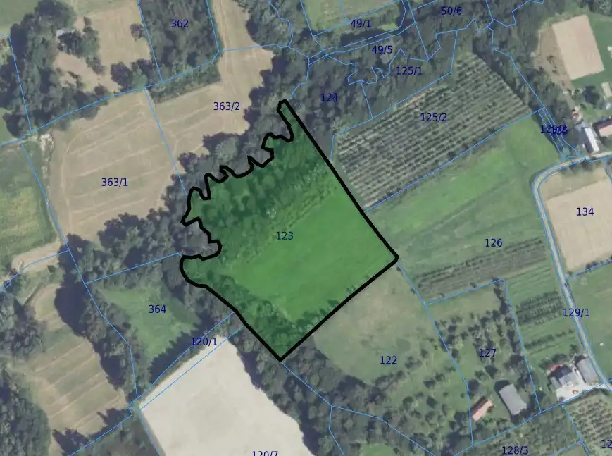 - Działka Niezagospodarowana, lekko pochyła, nieregularny