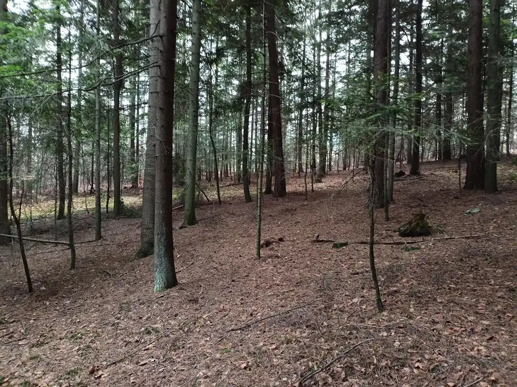 Oferujemy Państwu na sprzedaż działkę leśną o powierzchni 29 arów porośniętą w większej części lasem jodłowym, położoną w miejscowości Pogorzany w gminie Jodłownik. Działka pochyła kształtem zbliżona do prostokąta o wymiarach 23x125 metry. Dojazd drogą leśną.