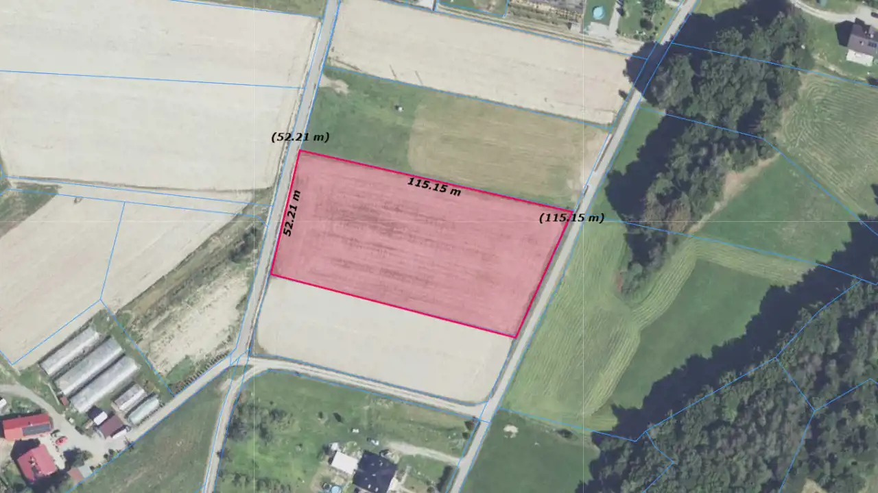 ✔ Działka: 47 ar budowlana + część rolna 13 ar = 60 arów