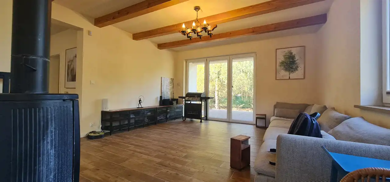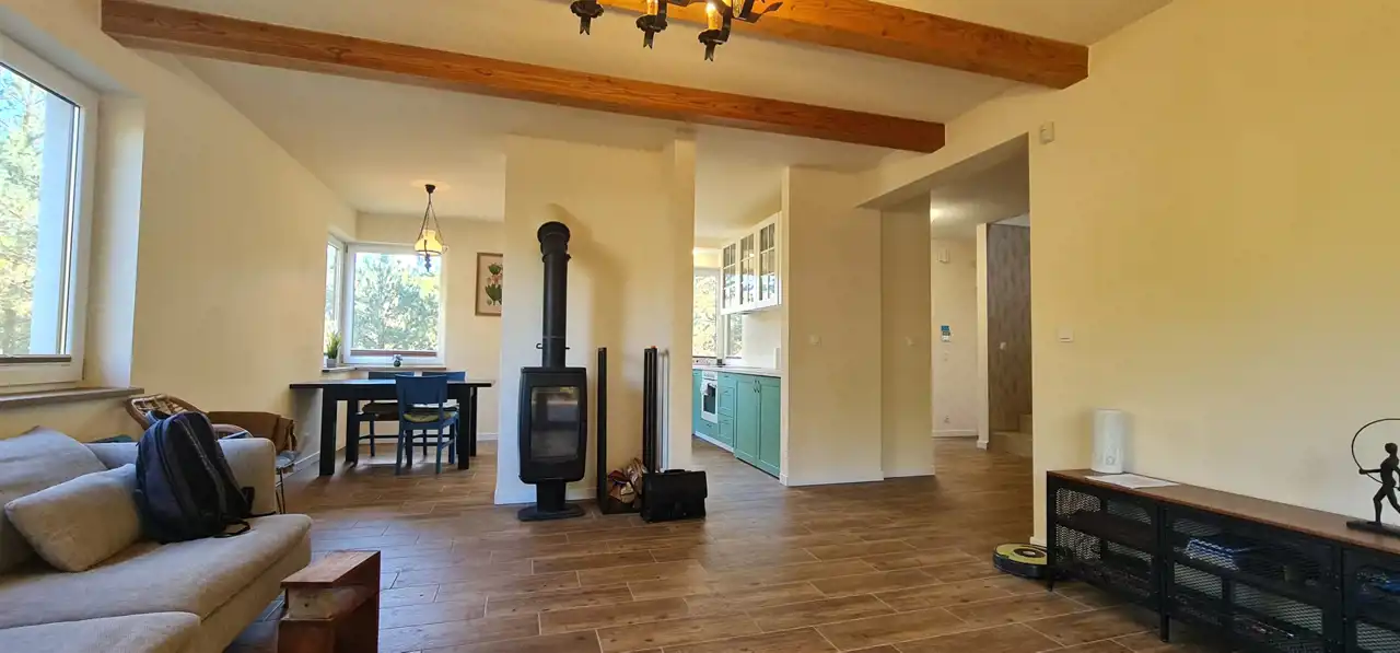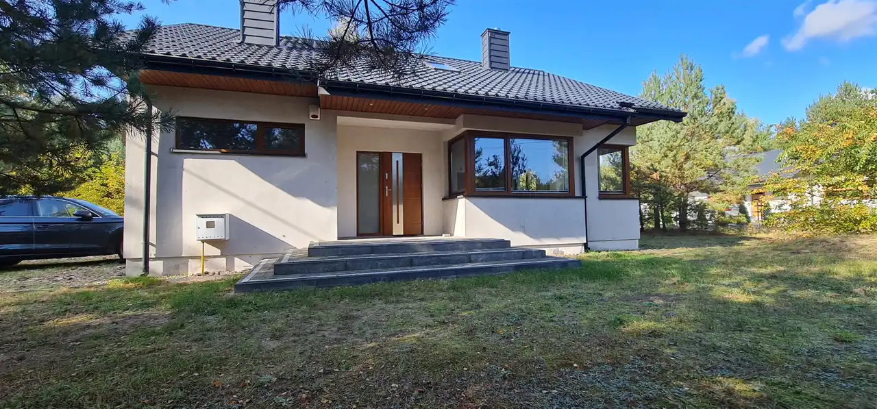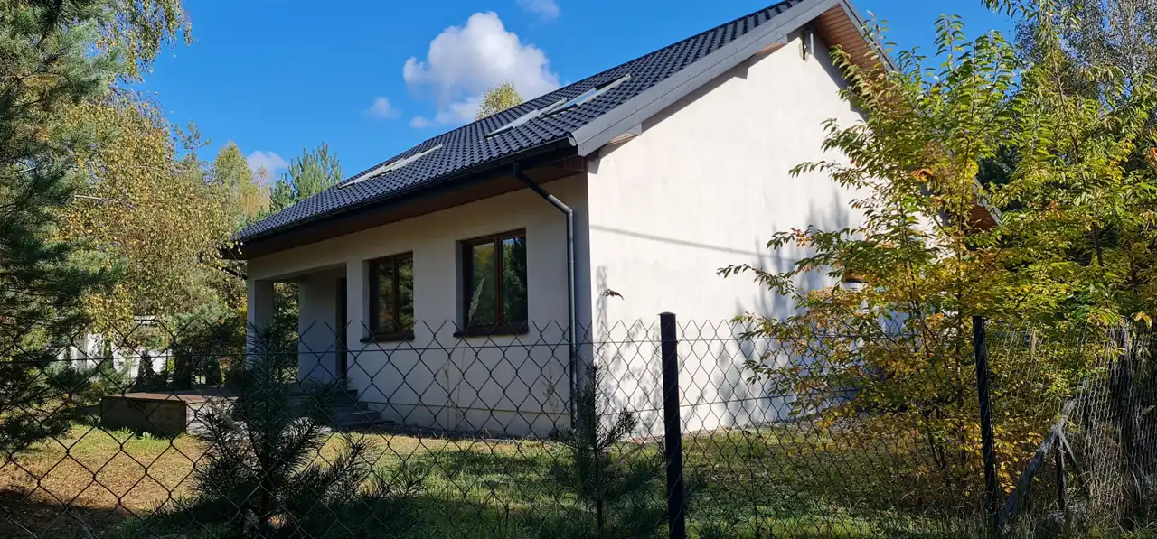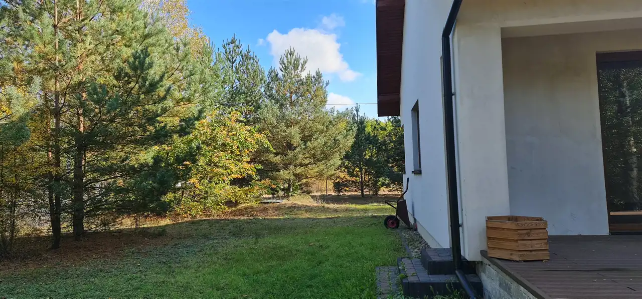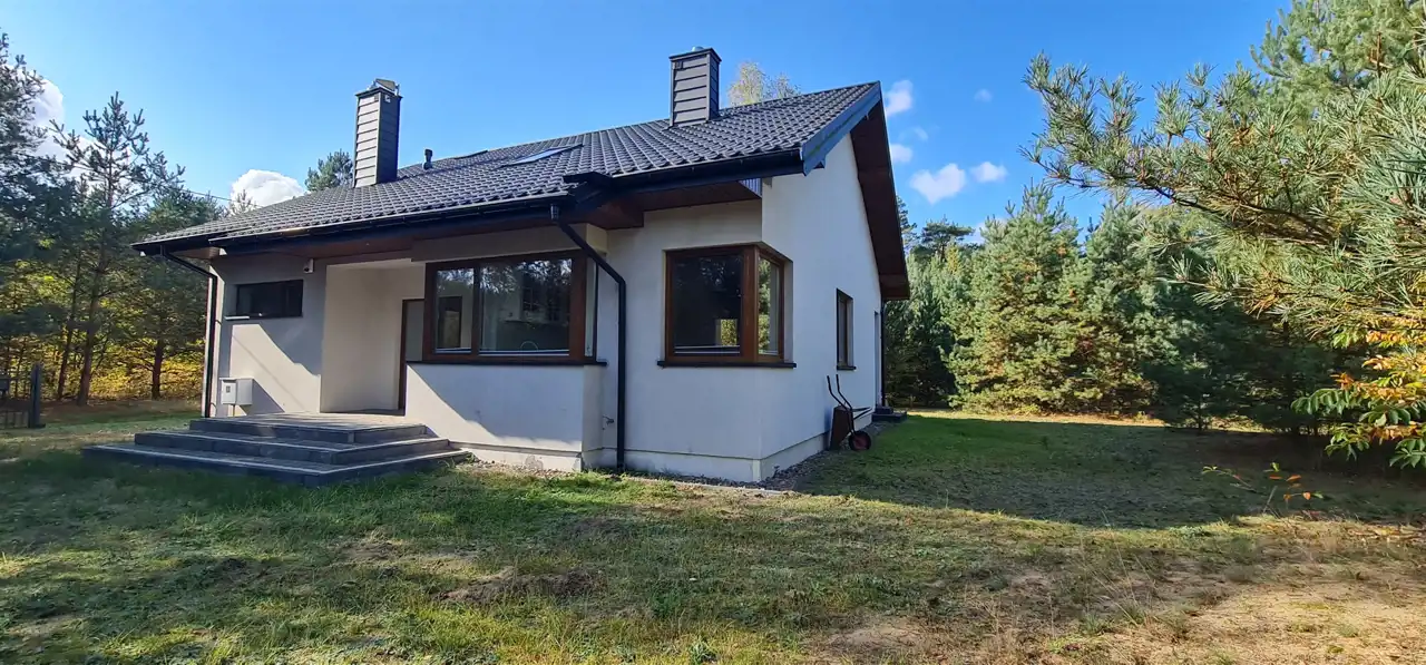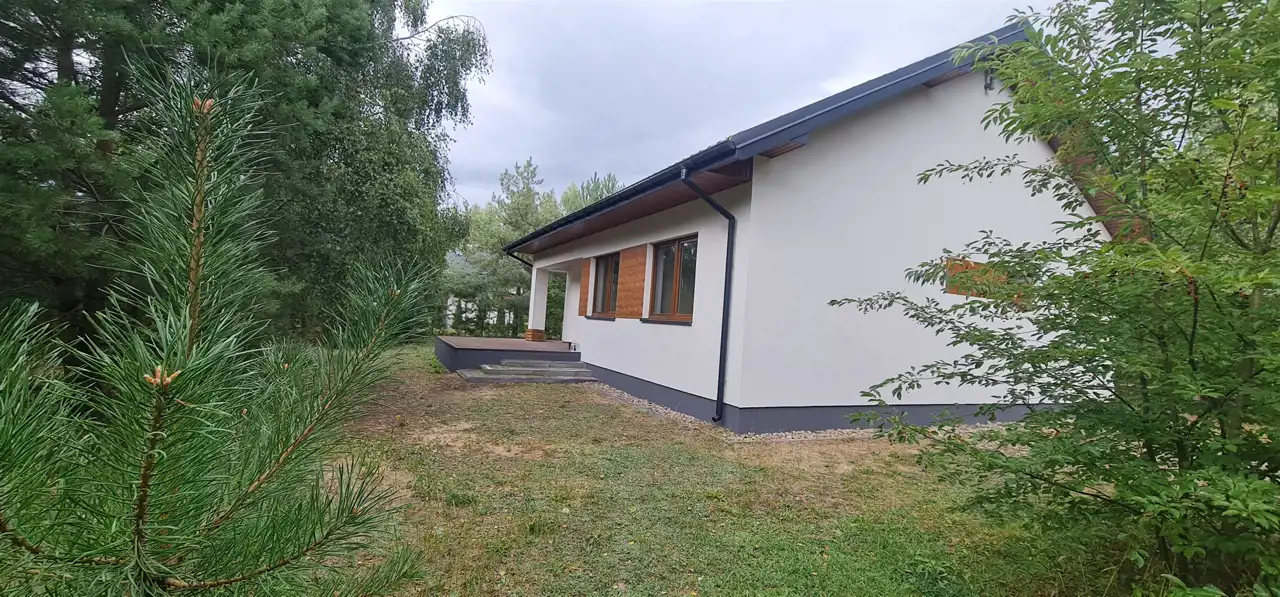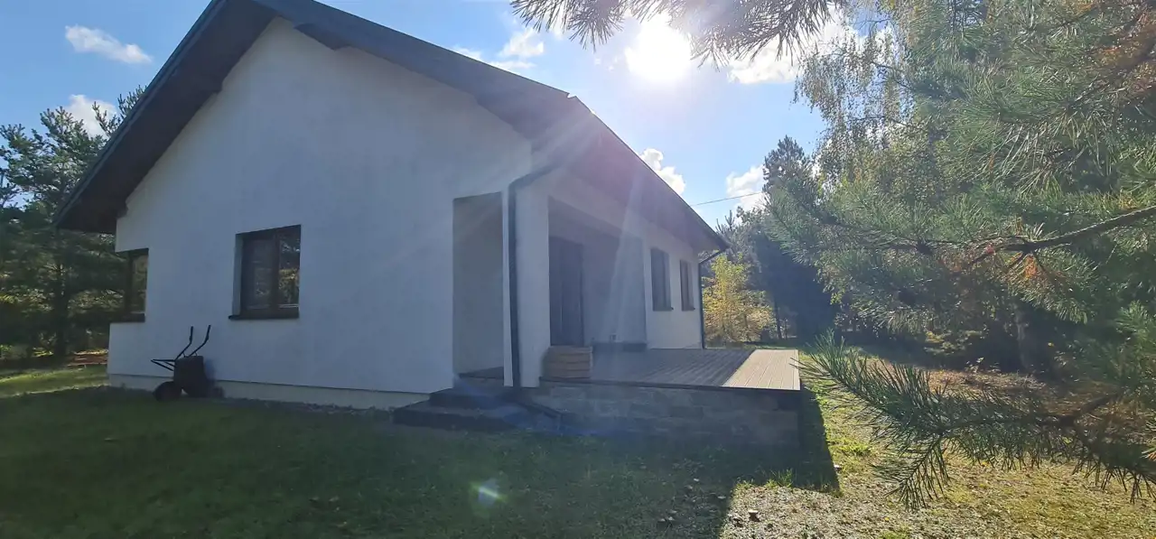 Mam do sprzedania nowy dom wykończony w otulinie lasu. Dom jest prawie nowy wykończony w dobrym smaku, wszystko jest dobrze przemyślane i z gustem. Wyposażony jest we wszystko co potrzebne do wygodnego i przyjemnego życia w pięknej atmosferze leśnej o zapachu sosnowym. Woda ze studni wierconej w żwirku, ogrzewanie z butli gazowej zakopanej w ziemi oraz kominka. Dom dobrze ocieplony i na suchym terenie. Bardzo blisko do rzeki WKRY można dojść spacerkiem do przystani kajaków. Bardzo ciekawa oferta!!!