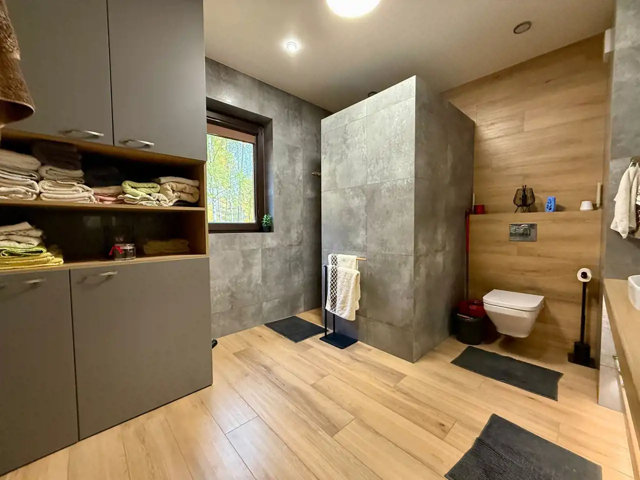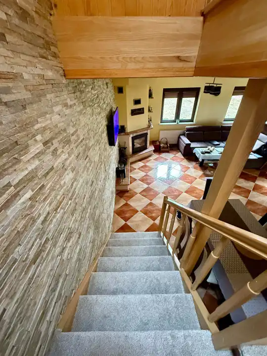 Ten wyjątkowy, murowany dom z cegły został wybudowany z dbałością o każdy detal. Ocieplony 15 cm wełny mineralnej i obity drewnem ze świerka syberyjskiego, zachwyca nie tylko wyglądem, ale i doskonałą izolacją.