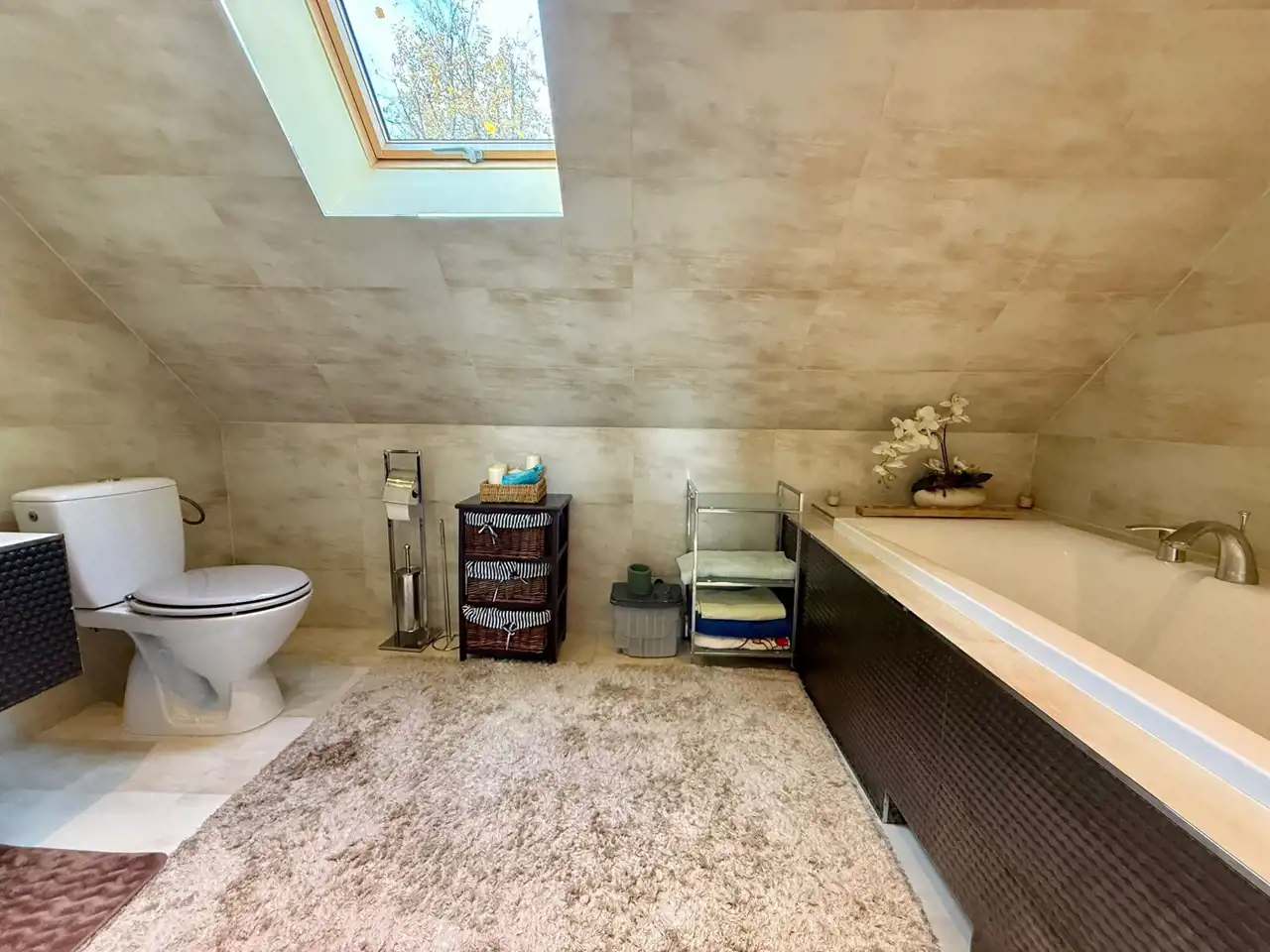 łazienka z wanną, w której zrelaksujesz się po długim dniu.