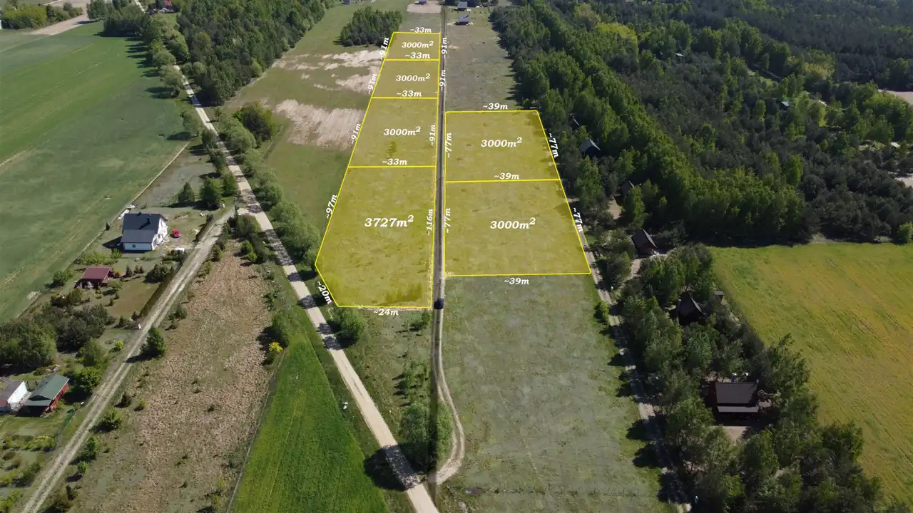 - działka nr 202/20: 33m x 91m x 33m x 91m