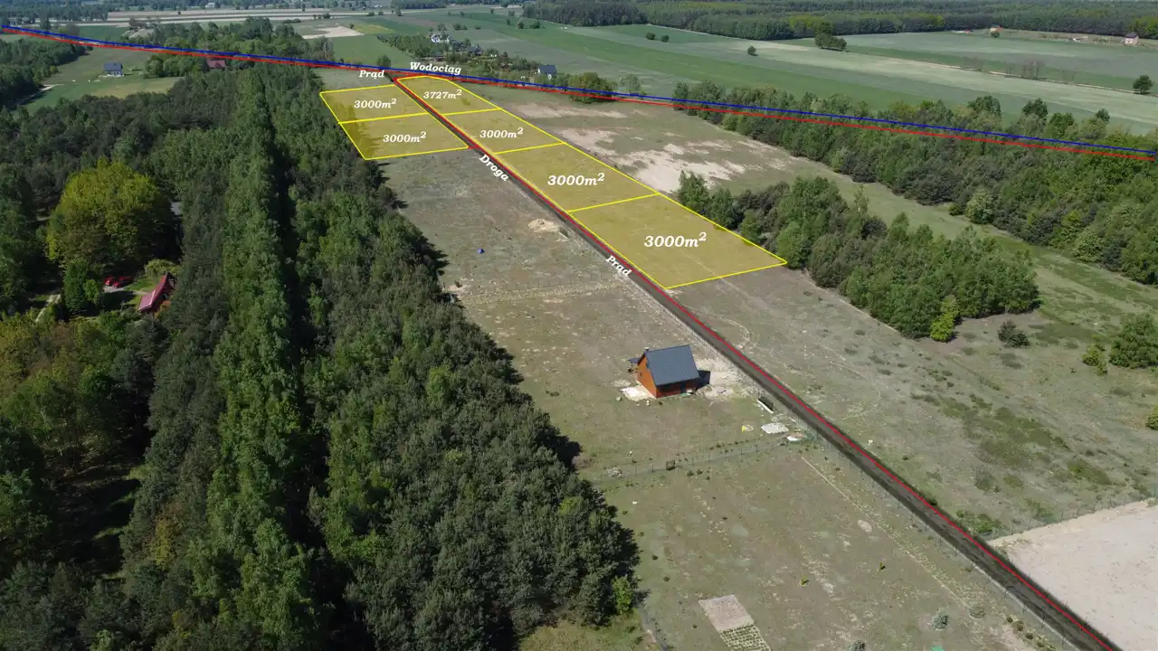 - Media Woda: w drodze; Kanalizacja: brak; Prąd: w ulicy; Gaz: brak