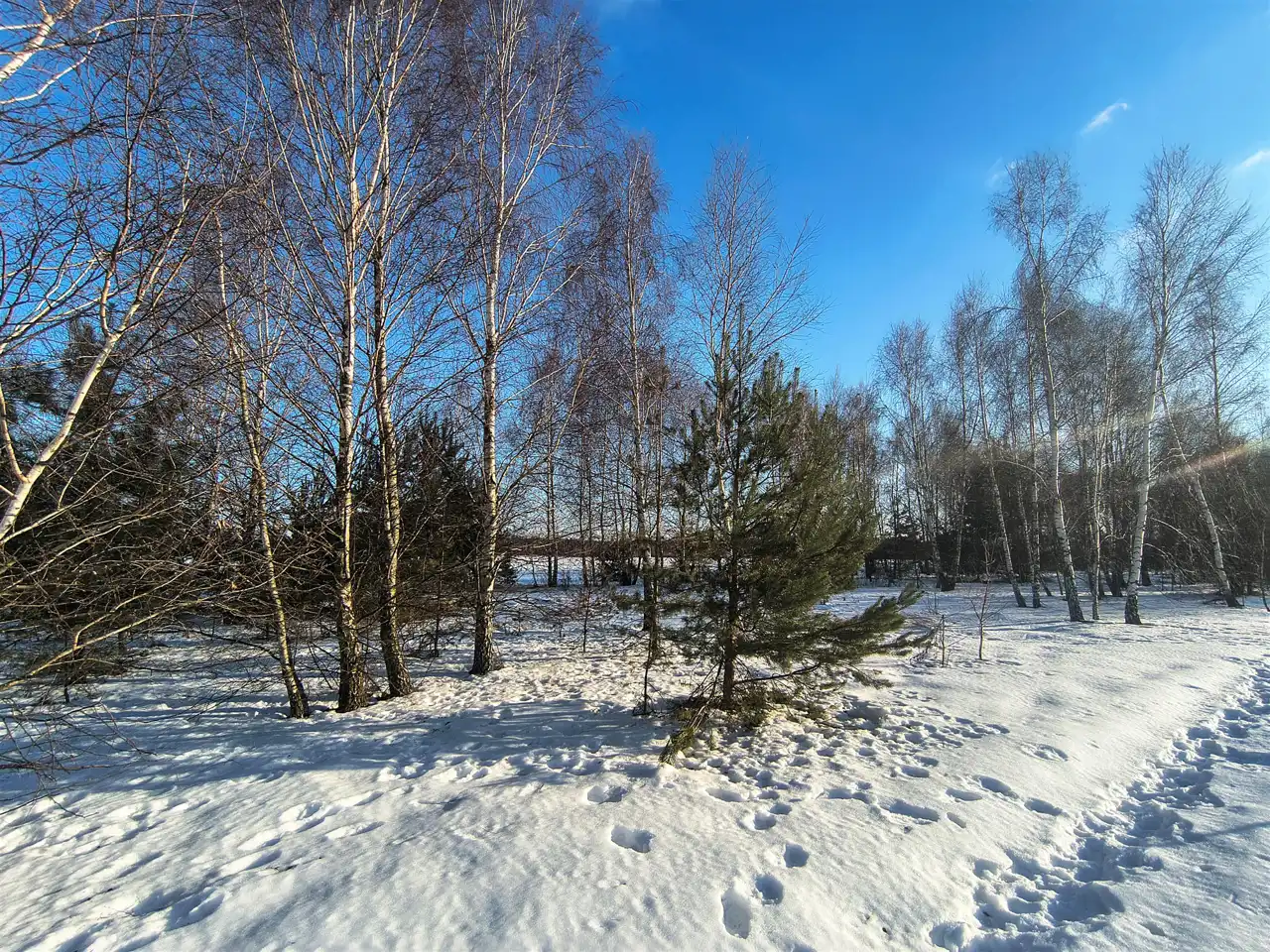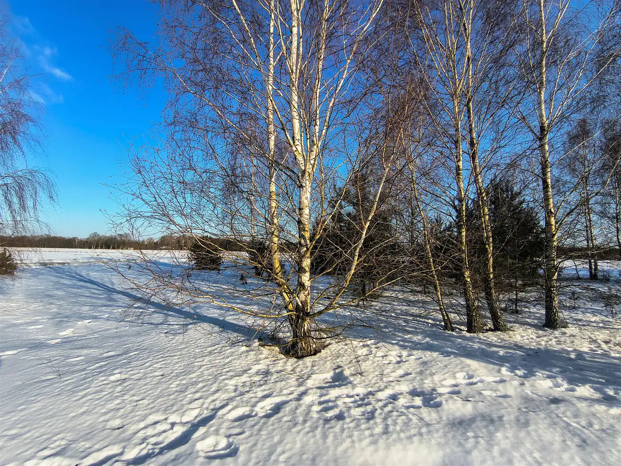 Działka została przygotowana do budowy. Wykonano staranną przecinkę mniejszych drzew i zbędnych krzewów, dzięki czemu wyznaczono naturalne miejsca pod dom. Jednocześnie z dużą dbałością pozostawiono najładniejsze, dorodne drzewa, które nadają nieruchomości niepowtarzalny klimat, zapewniają prywatność i gotowy ogród w stylu leśnym.