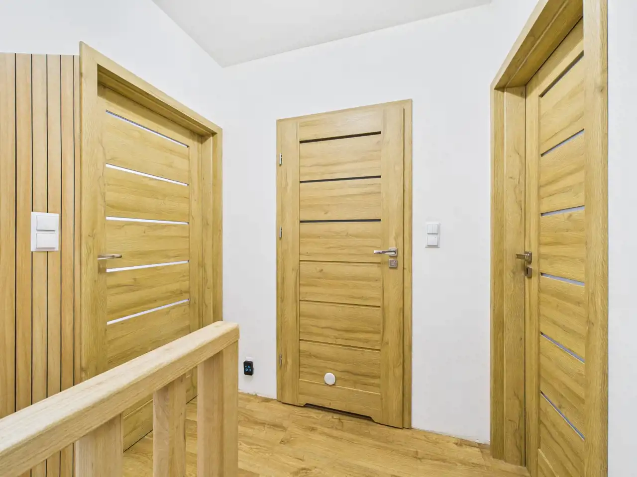 Na piętrze zaprojektowano trzy sypialnie, które możesz zaaranżować jako pokoje dla dzieci, gabinet lub pokój gościnny. Do dyspozycji jest także druga łazienka z wanną, zapewniająca pełen komfort dla domowników.