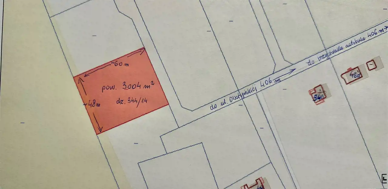 Działka budowlana (aktualne warunki zabudowy) o powierzchni 3004 m2 w podolsztyńskiej miejscowości Jonkowo.