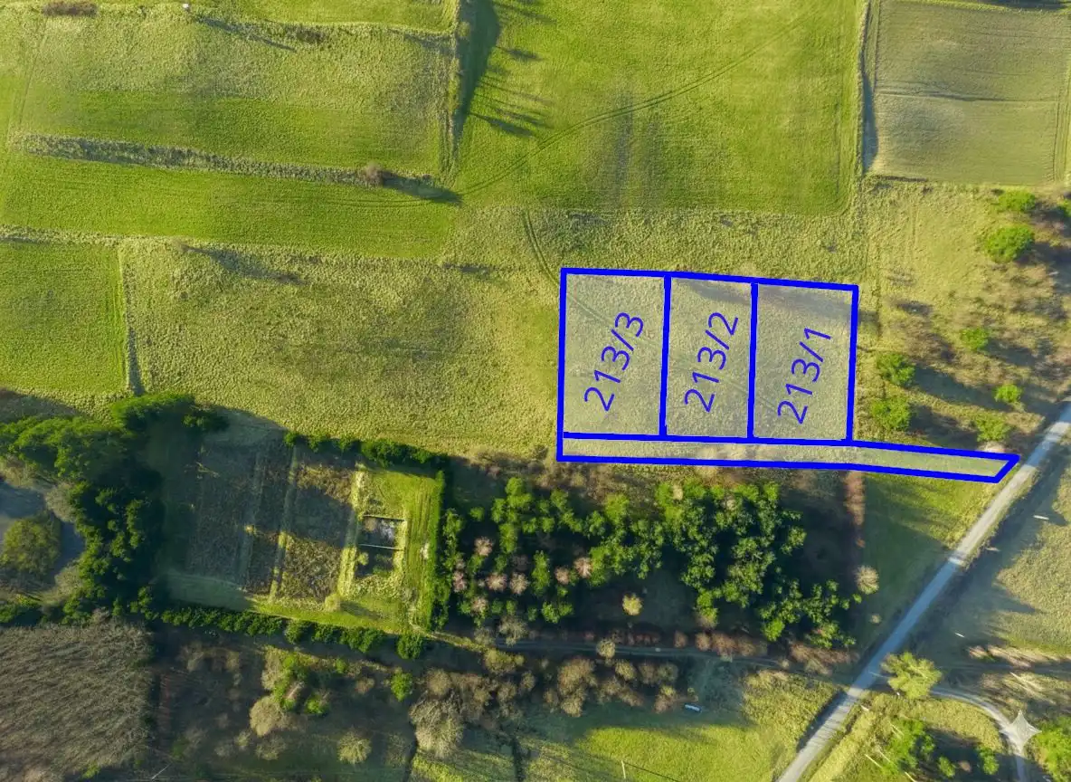 Oferta dotyczy działek nr 213/1 o pow. 1807m2, 213/2 o pow. 1806m2 i 213/3 o pow. 1807m2 każda w cenie 79 000 zł.