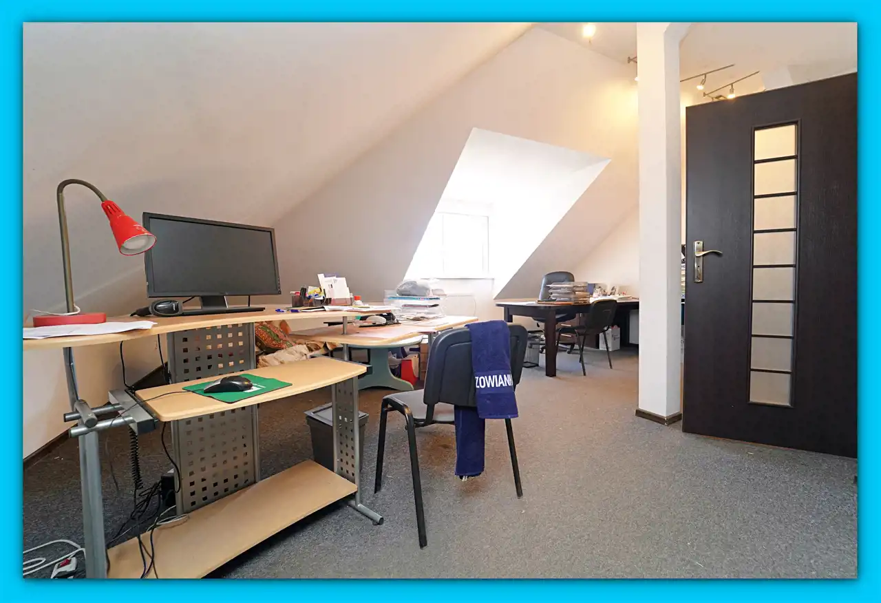 FUNKCJA BIUROWO-MIESZKALNA o łącznej powierzchni użytkowej (bez skosów) 163,39 m2 (powierzchnia mierzona po podłodze 235,69 m2)
