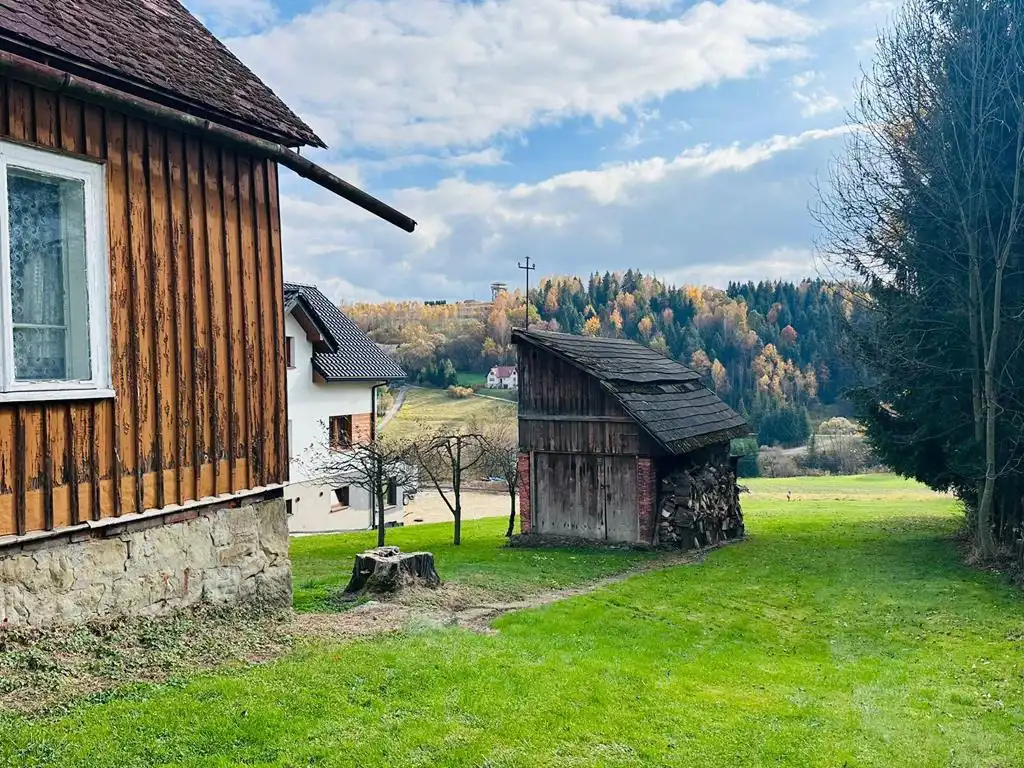 Na działce znajduje się stary dom z nadanym numerem oraz budynek gospodarczy.
