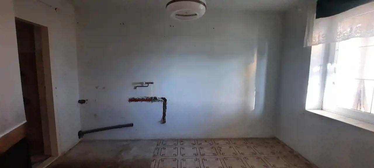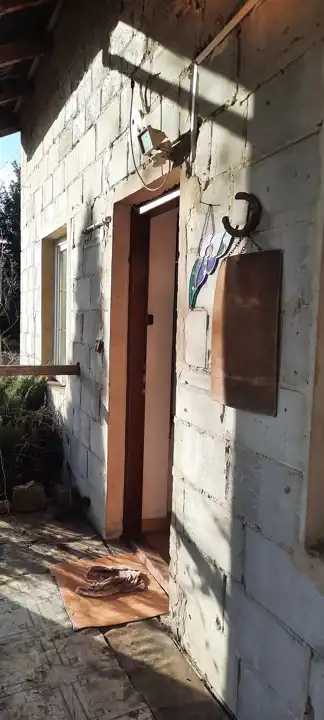 Dom wybudowany pod koniec lat 90-tych z pustaka, ocieplony styropianem (pomiędzy pustakami) dach przykryty onduliną. Budynek odebrany do użytku; posiada jedną kondygnację mieszkalną oraz poddasze.