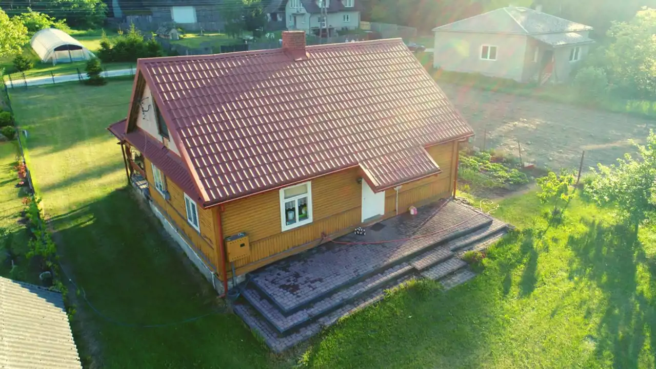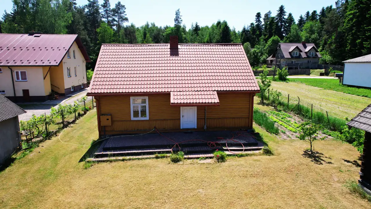 - dach kryty blachodachówką, okna drewniane podwójne,