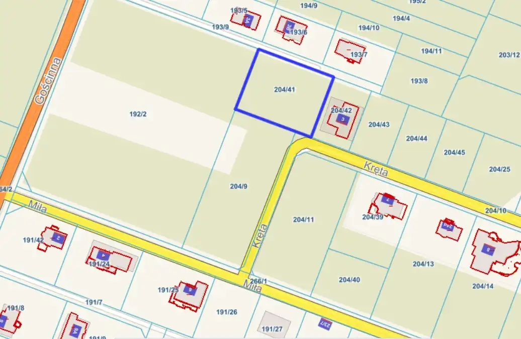 - Dojazd: droga prywatna ul. Kręta do ulicy publicznej (gminnej) Miłej i Gajowej