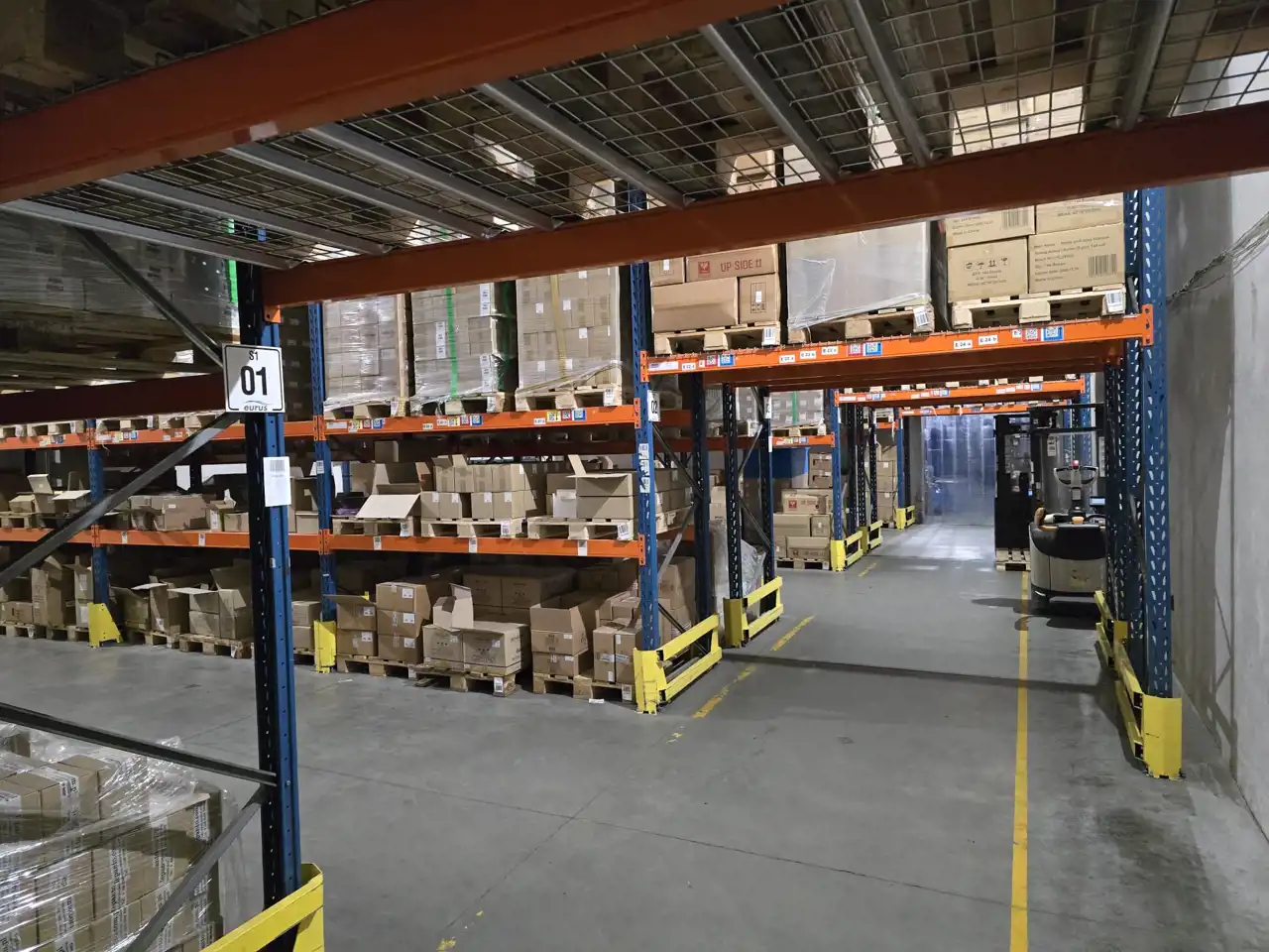 - Wyposażenie: Hala jest w pełni wyposażona w regały wysokiego składowania, co pozwala na maksymalne wykorzystanie kubatury bez dodatkowych nakładów finansowych.