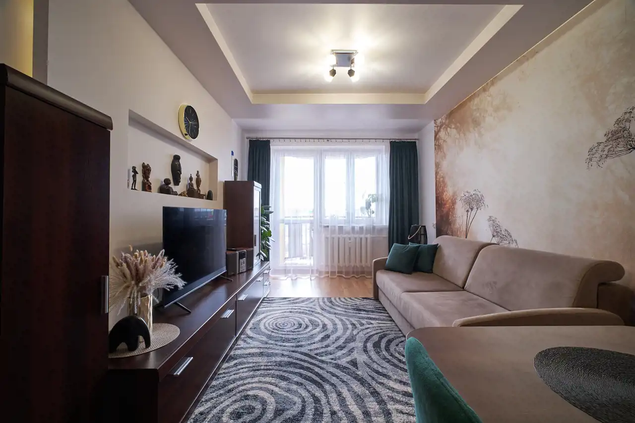 Lokalizacja - Mieszkanie zlokalizowane na osiedlu mieszkaniowym, wśród niskich bloków. Przed blokiem parking dla samochodów. Blisko znajdują się sklepy, punkty usługowe, przystanki komunikacji miejskiej a także tereny zielone. Jest to dobre miejsce do zamieszkania dla rodzin.