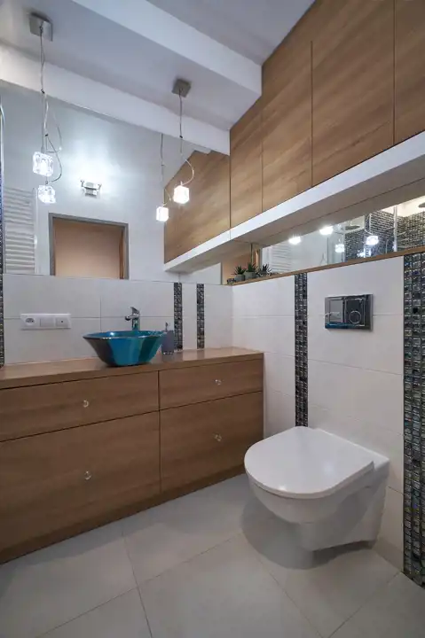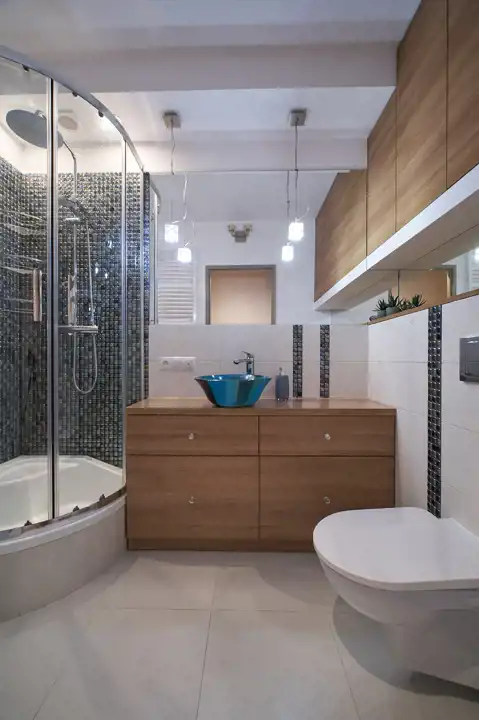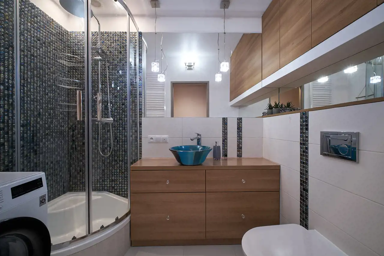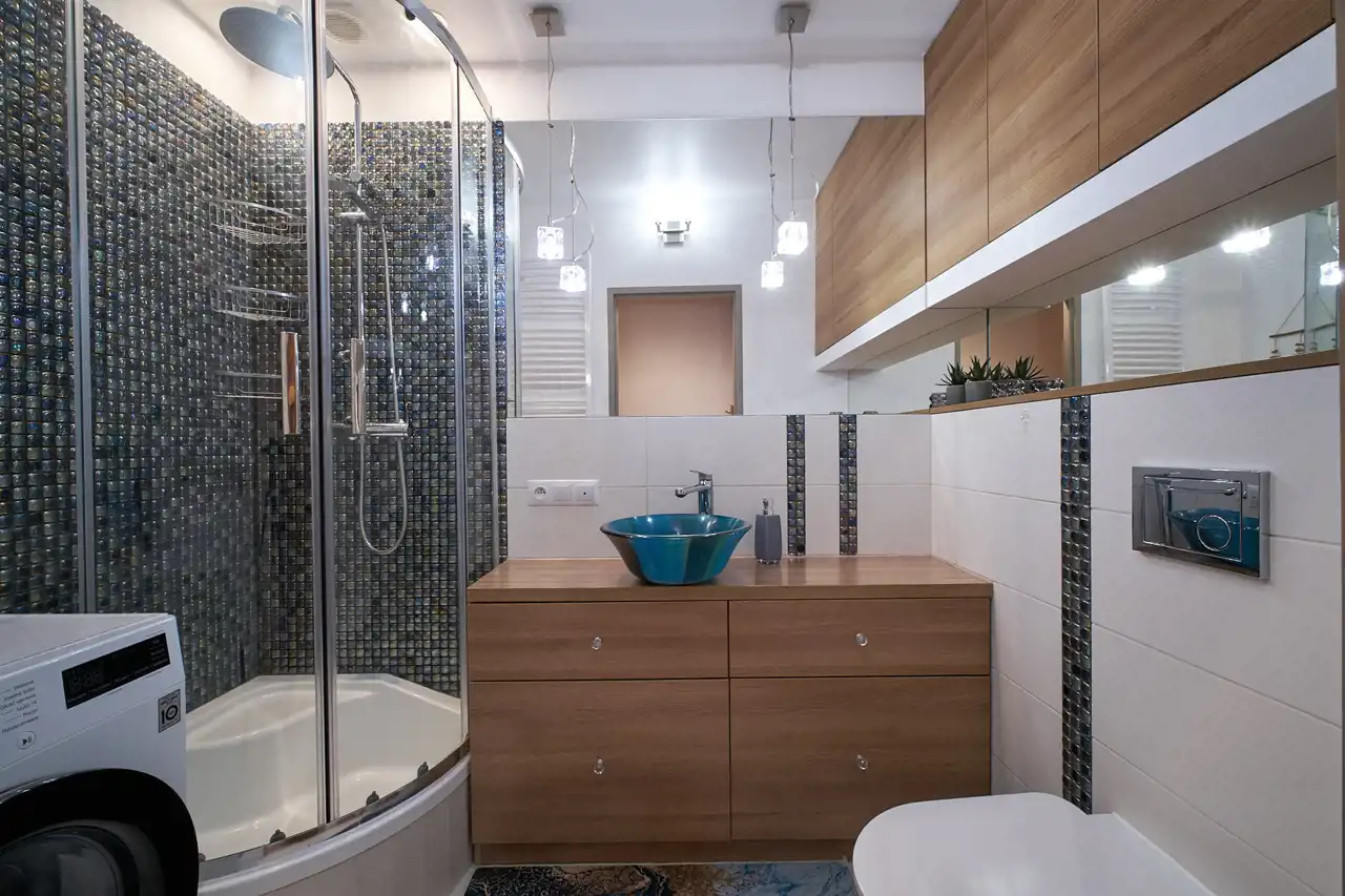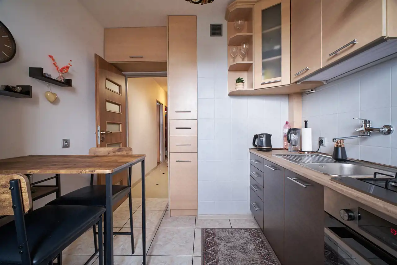 Oddzielna kuchnia wyposażona w funkcjonale szafki może stanowić dodatkowy atut dla wielu klientów. Łazienka razem z WC wyposażona w kabiną prysznicową.