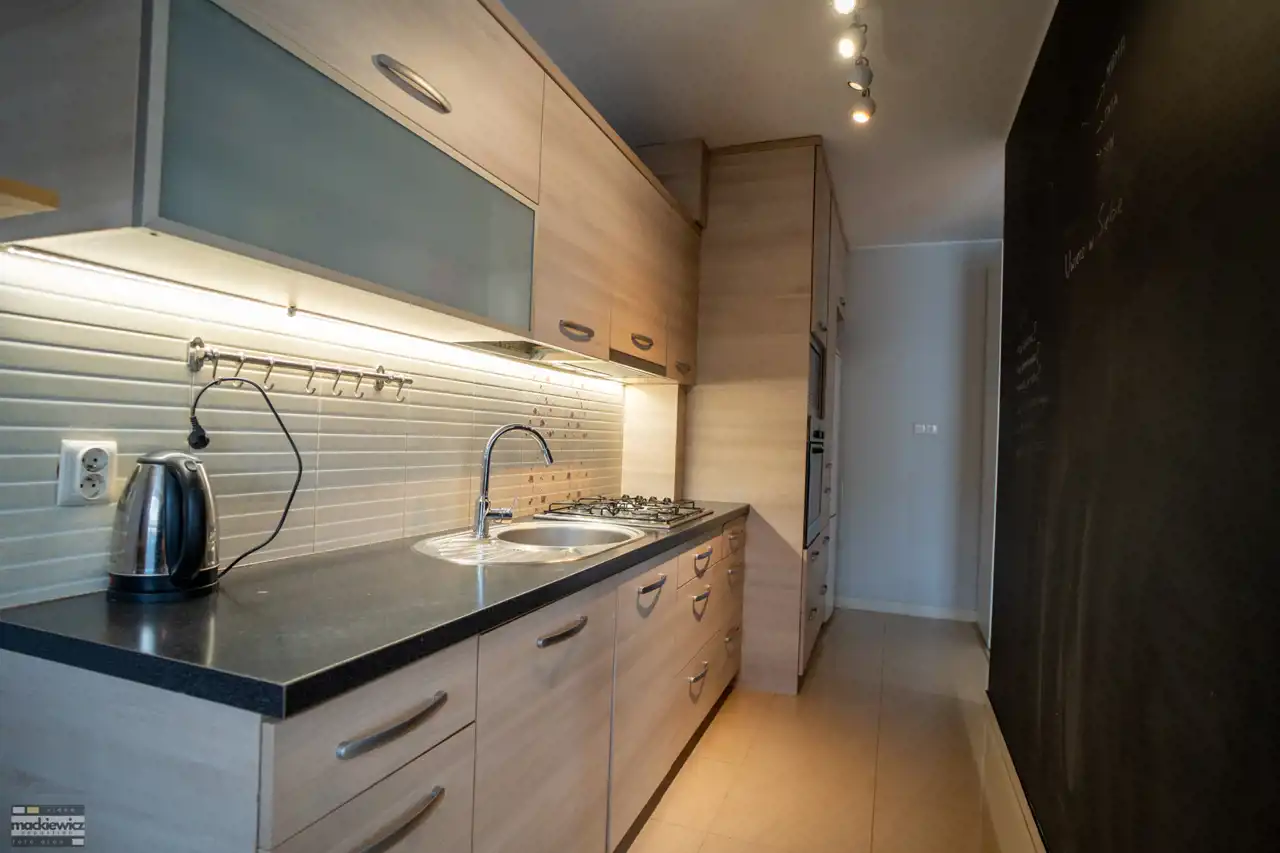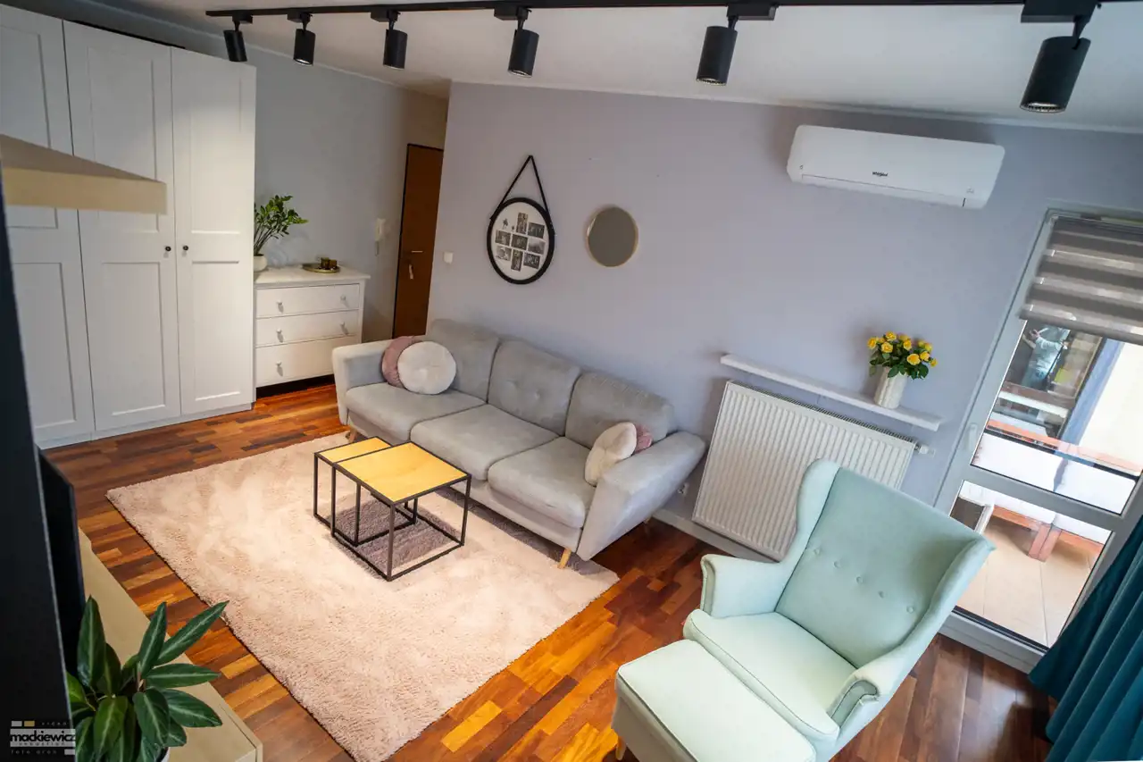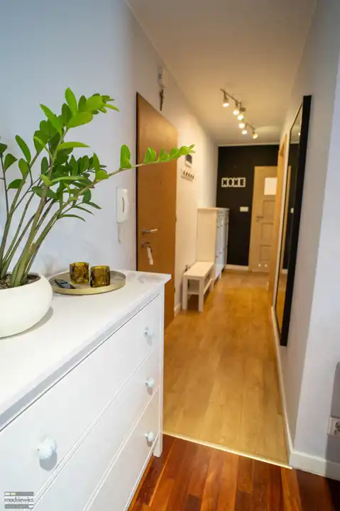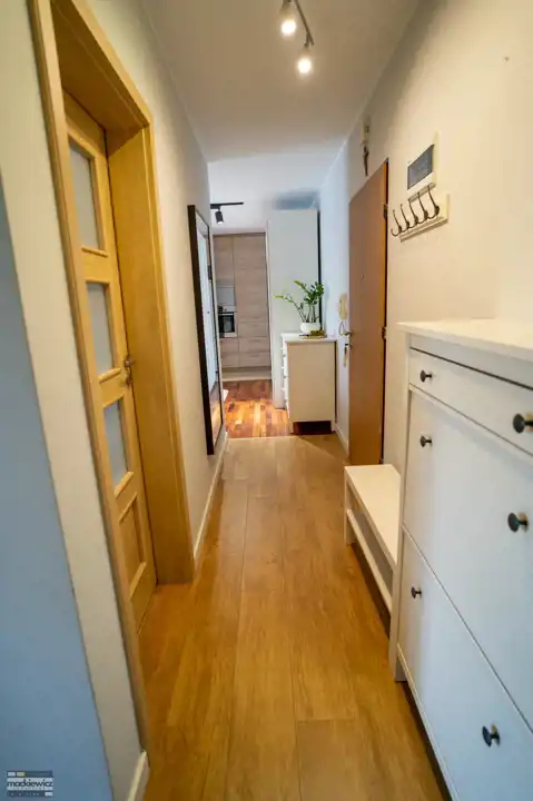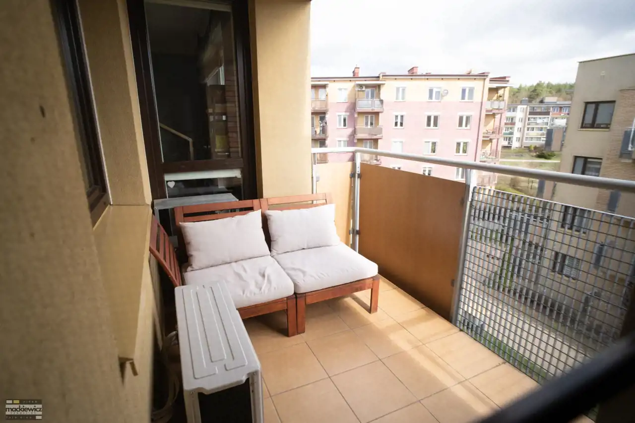 Lokal o powierzchni około 62,30 m2, znajduje się na III piętrze w nowszym budownictwie z 2009. Mieszkanie w pełni umeblowane i wyposażone w sprzęt AGD. W skład mieszkania wchodzą: duży salon z kuchnią w zabudowie ze sprzętem AGD, dwie oddzielne sypialnie, łazienka z WC oraz wanną oraz funkcjonalny korytarz. Mieszkanie ciepłe oraz słoneczne, posiada klimatyzację. Do mieszkania przynależy duży balkon typu loggia (wyjścia z dwóch pokoi) oraz miejsce postojowe w garażu zamykanym (za dodatkową opłatą ).