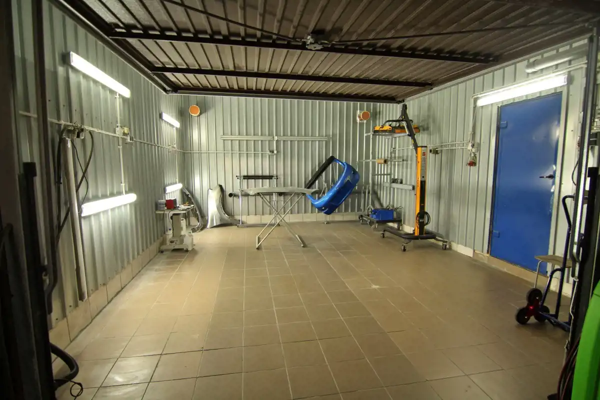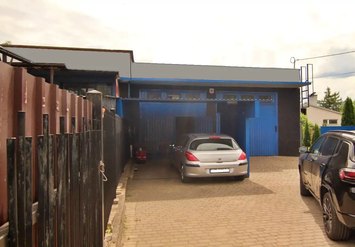 Warsztat o powierzchni 140 m2 zlokalizowany jest na działce o powierzchni 540 m2 i składa się z trzech stanowisk, magazynu o powierzchni 15 m2, niewielkiego biura oraz toalety.