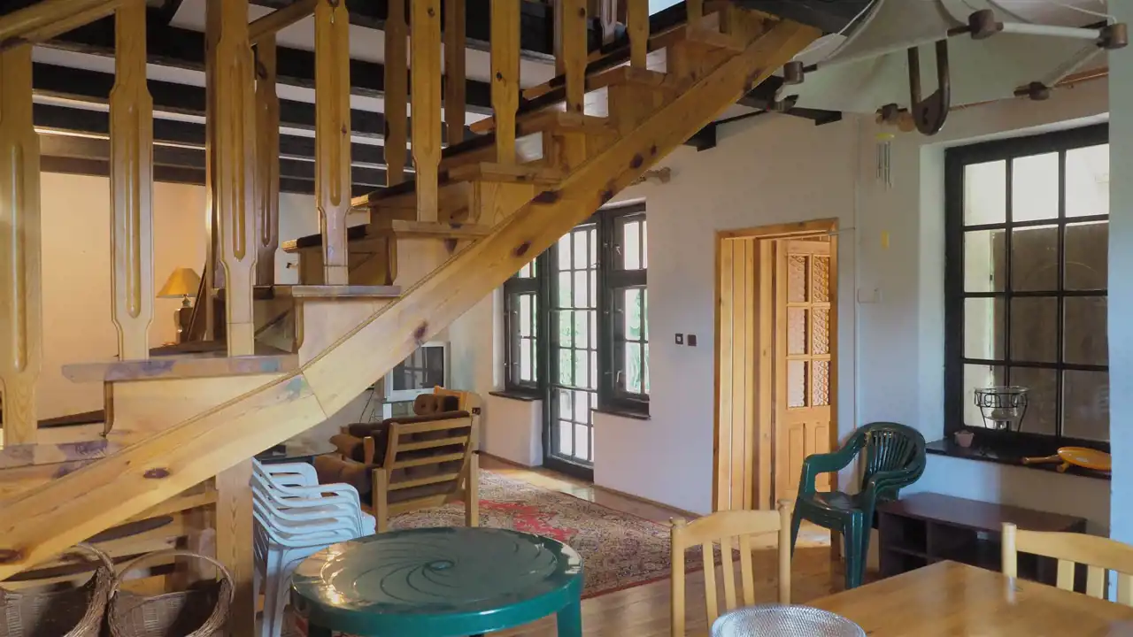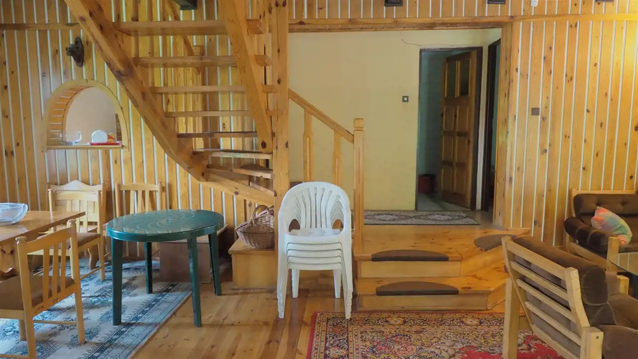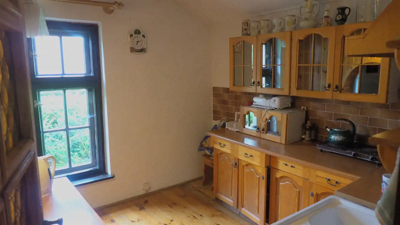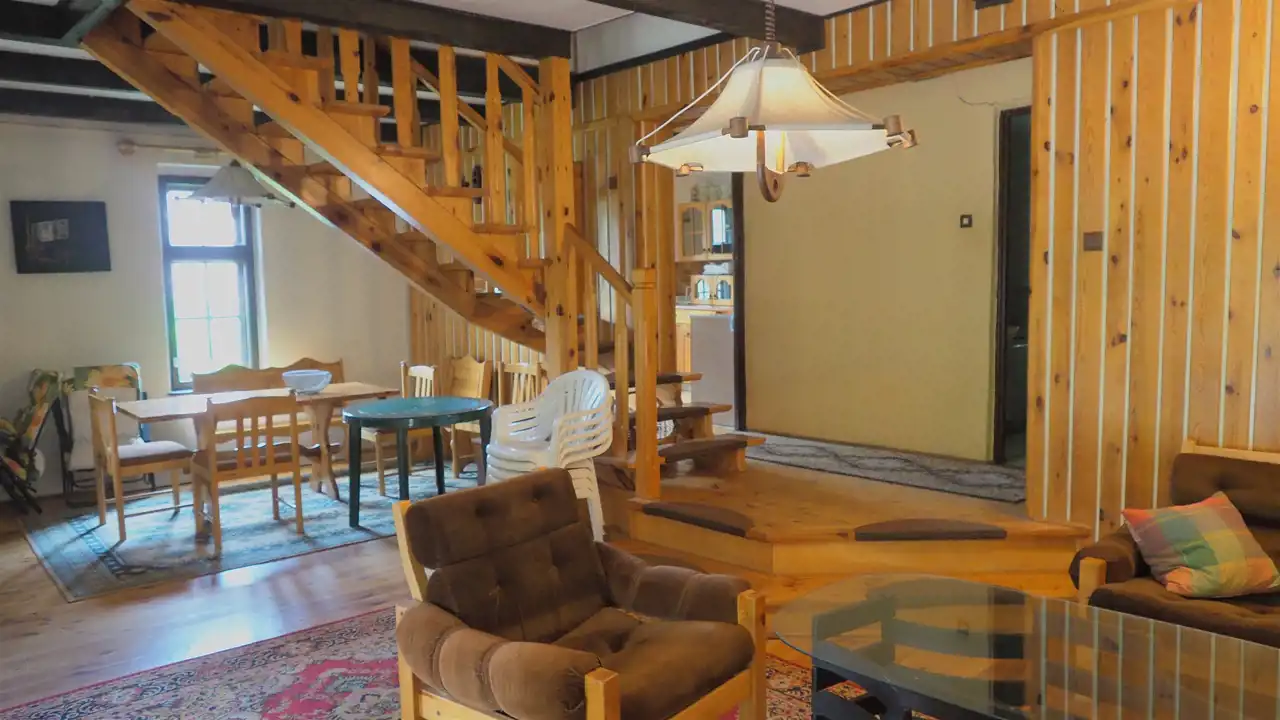 - PARTER - salon z kominkiem o pow. 38 m 2, kuchnia o pow. 7,7m2, pokój o pow. 7,7 m2, łazienka o pow. 3,8 m2, , pomieszczenie gospodarcze-spiżarka o pow. 4 m2 oraz przedpokój o pow. 2,3 m 2