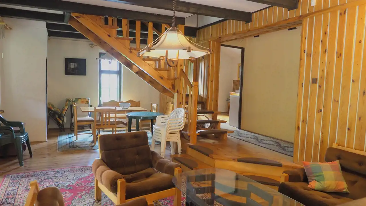- PIWNICA - pokój myśliwski z oknami i widokiem na jezioro o pow. 16 m2, WC z prysznicem o pow. 1,8 m2, korytarz o pow.2,4 m2, pomieszczenie gospodarcze o pow. 36 m2, pomieszczenie pod schodami o pow.1,9 m2 oraz garaż o pow. 16,8 m2