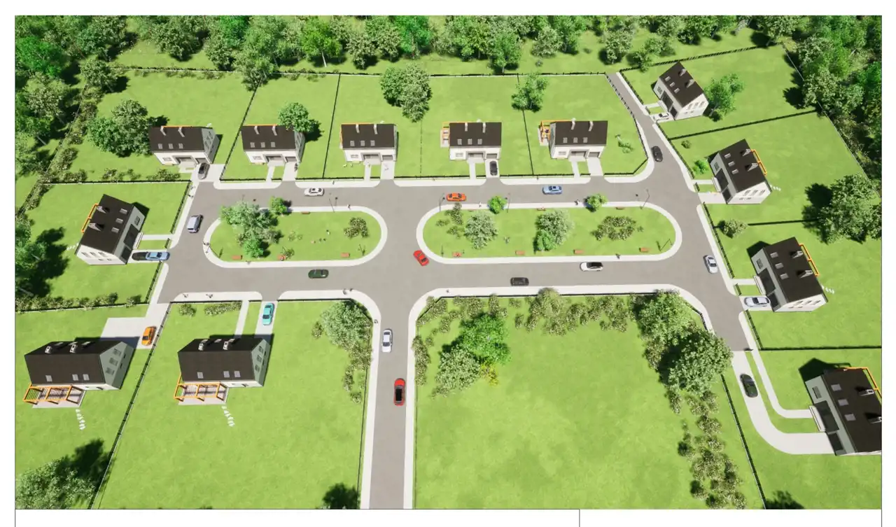 Na nowo powstającym osiedlu zaprojektowano 13 domów na działkach różnej wielkości.