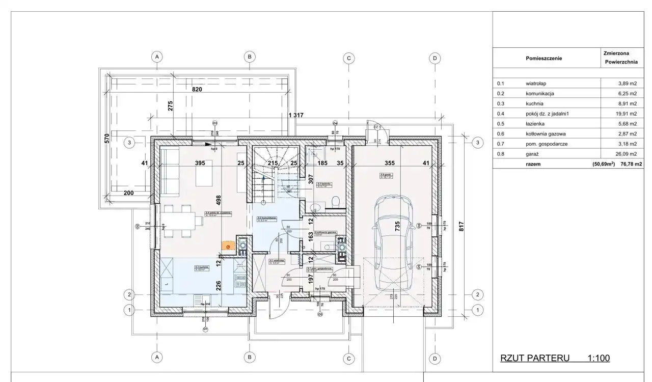 - pokój dzienny z jadalnią 19,91 m2 (z wyjściem do ogrodu)
