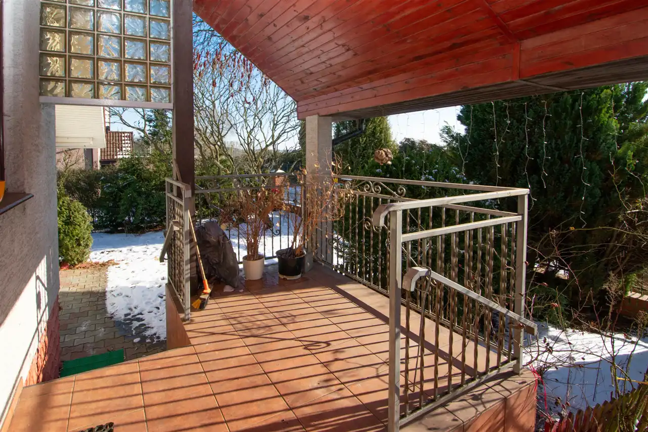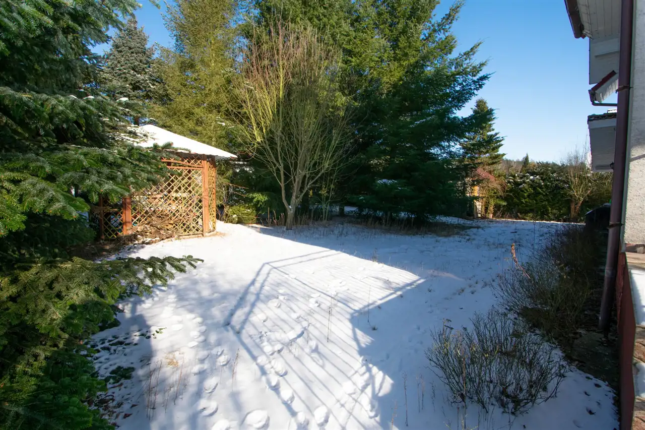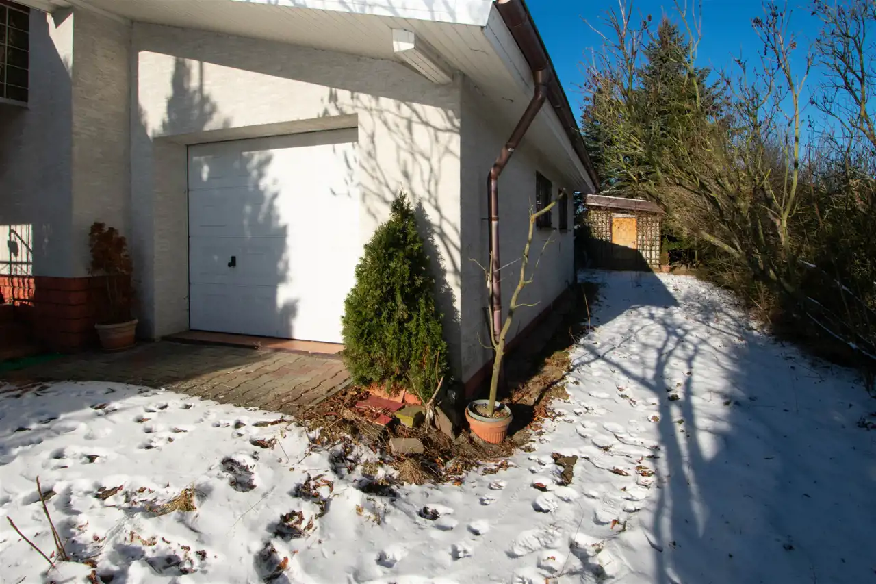 Dom posadowiony jest na działce o powierzchni 1000 m² – ogrodzonej, zagospodarowanej, dającej ogromny potencjał aranżacyjny: ogród, plac zabaw, taras, a nawet mały warzywnik.