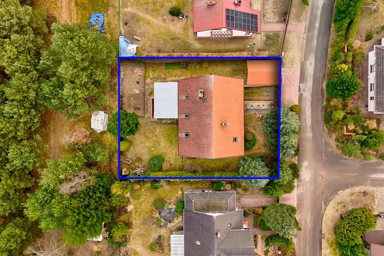 - Działka Zagospodarowana, lekko nachylona, prostokąt