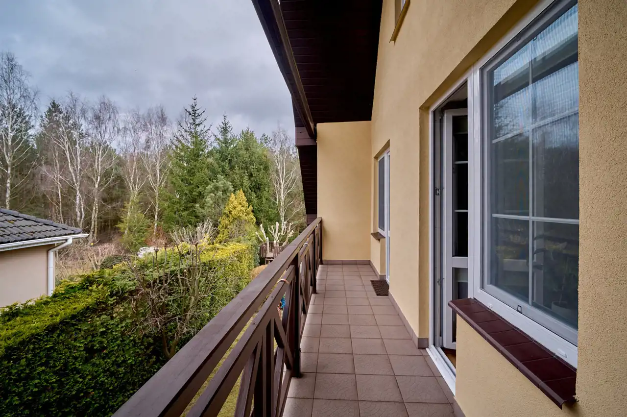 Nieruchomość z 2005 roku, systematycznie modernizowana – m.in. nowa zabudowa kuchenna wraz ze sprzętem AGD, wymiana okien na trzyszybowe, nowe rolety, a od strony lasu dodatkowo rolety zewnętrzne. Na parterze znajduje się również odnowiona łazienka z prysznicem oraz osobne WC.