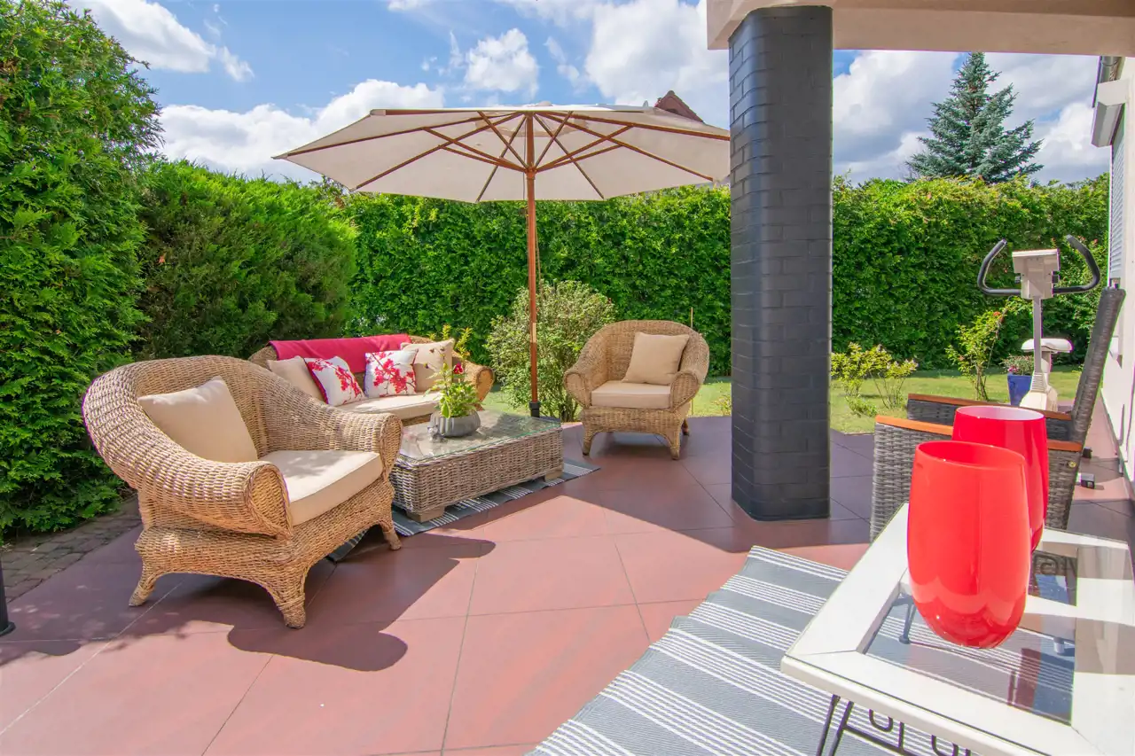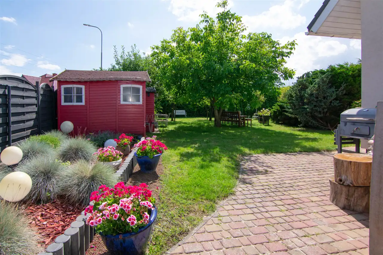Nieruchomość posadowiona jest na ogrodzonej działce o powierzchni 1074 m², starannie zagospodarowanej licznymi nasadzeniami – krzewami ozdobnymi, kwiatami oraz drzewami. Ogród to prawdziwa oaza spokoju, dająca możliwość relaksu wśród zieleni oraz przestrzeń do spotkań w gronie rodziny i przyjaciół.