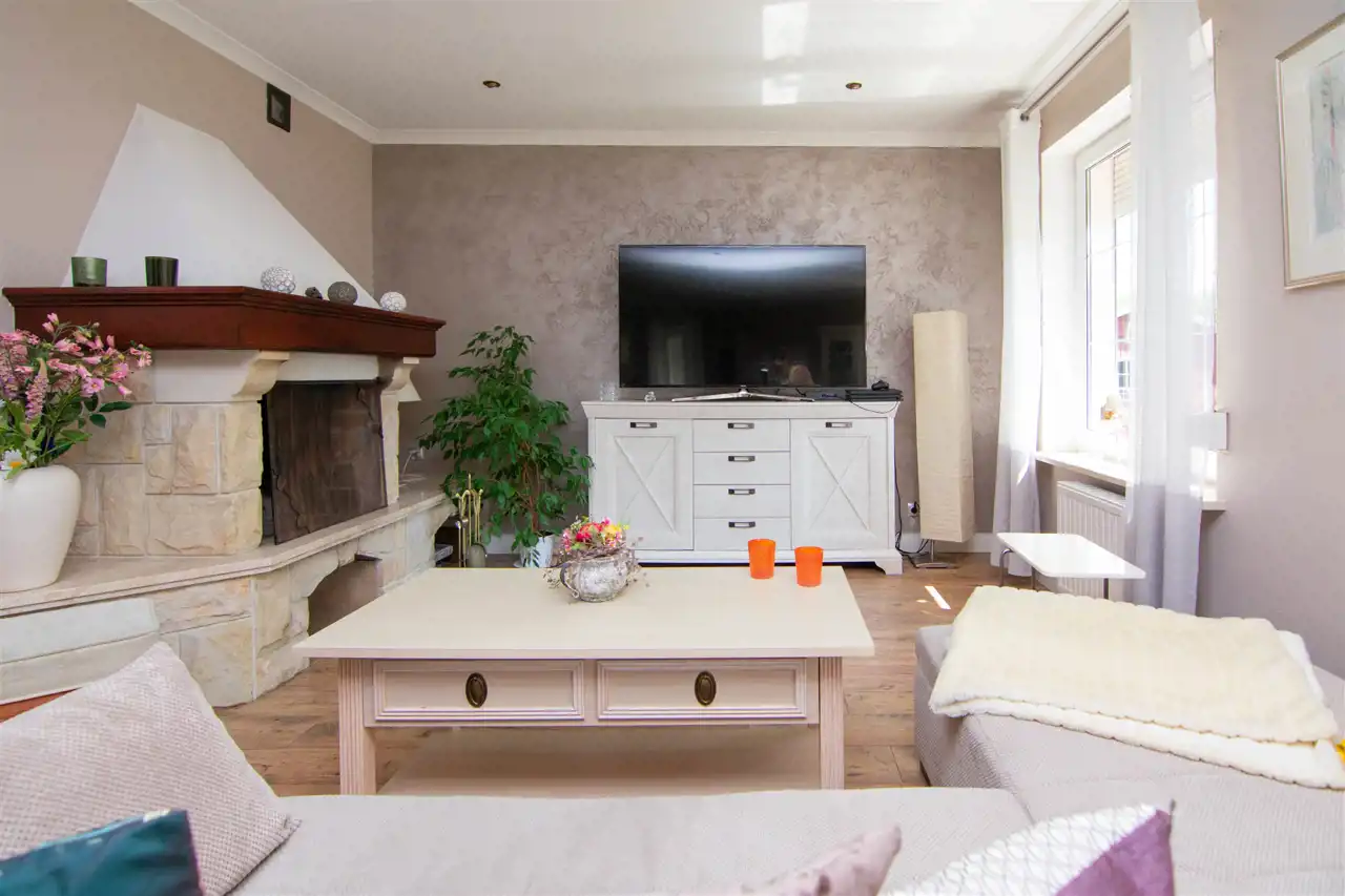Dom ogrzewany jest piec kondensacyjnym na gaz oraz posiada kominek na drewno, który tworzy wyjątkowy klimat i stanowi alternatywne źródło ciepła w chłodniejsze dni.