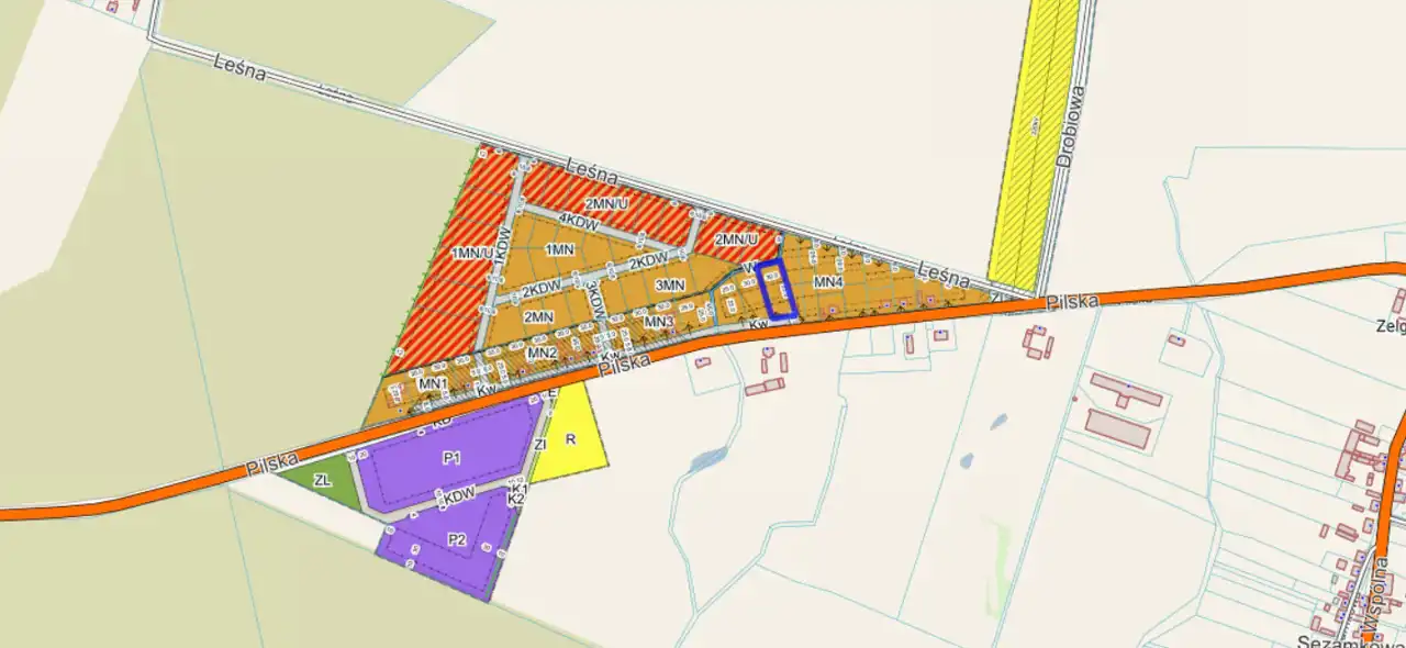 Przedmiotem oferty jest działka niezabudowana o pow. 2081 m2 w kształcie rombu.