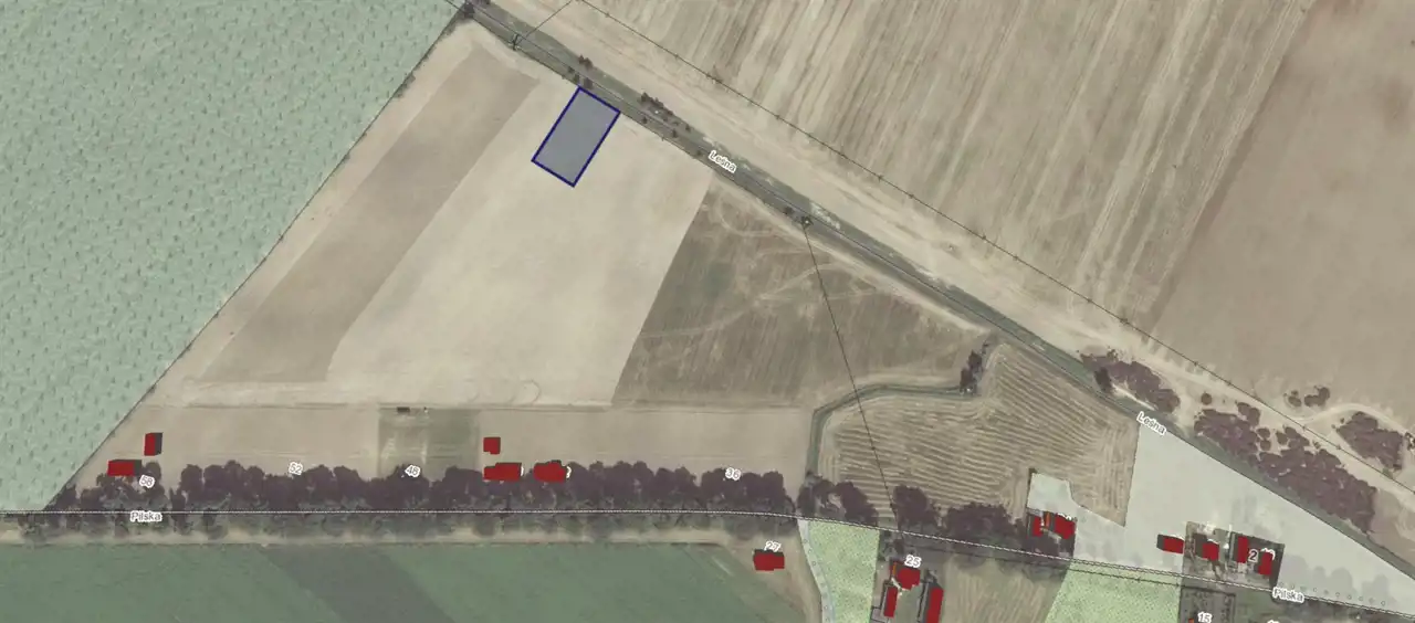 Działka w kształcie prostokąta zlokalizowana blisko lasu, wzdłuż ulicy Leśnej, która prowadzi do jeziora, cicha spokojna okolica. Miejscowość oddalona 16 km od centrum Piły, znajduje się w niej między innymi przedszkole, sklep spożywczy, kaplica.