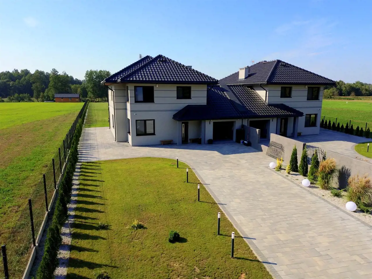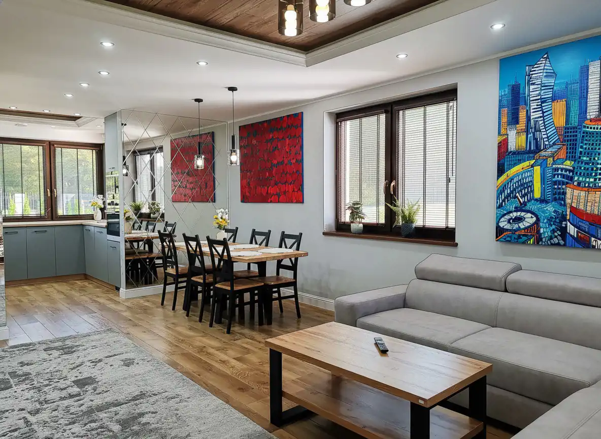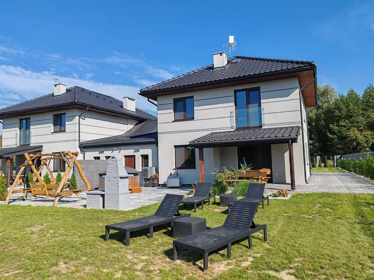 Dom wyróżnia się nowoczesnym projektem (Ametyst 2) i został wyposażony we wszystkie niezbędne udogodnienia, w tym kompletnie urządzoną kuchnię.