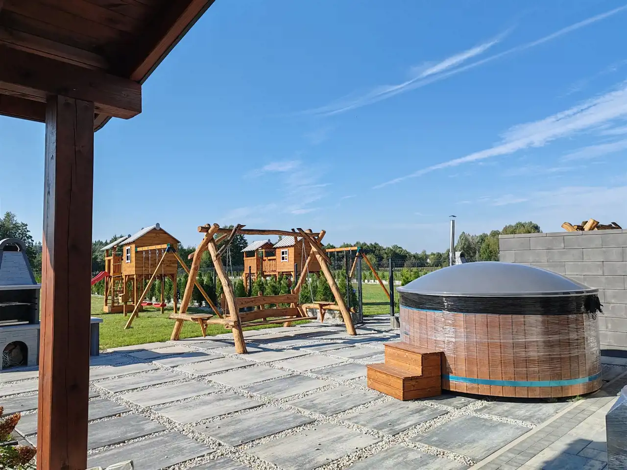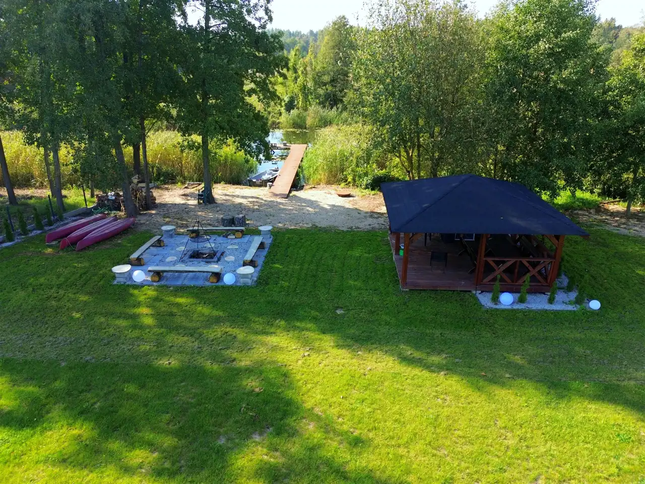 Duża, ogrodzona działka o powierzchni 4600 m², z bezpośrednim dostępem do rzeki Lega, stwarza idealne warunki do wypoczynku i rekreacji. Na działce znajduje się plac zabaw, drewniana huśtawka, balia, wiata nad rzeką oraz miejsce na ognisko. W cenie nieruchomości zawarte są także kajaki oraz rowery.