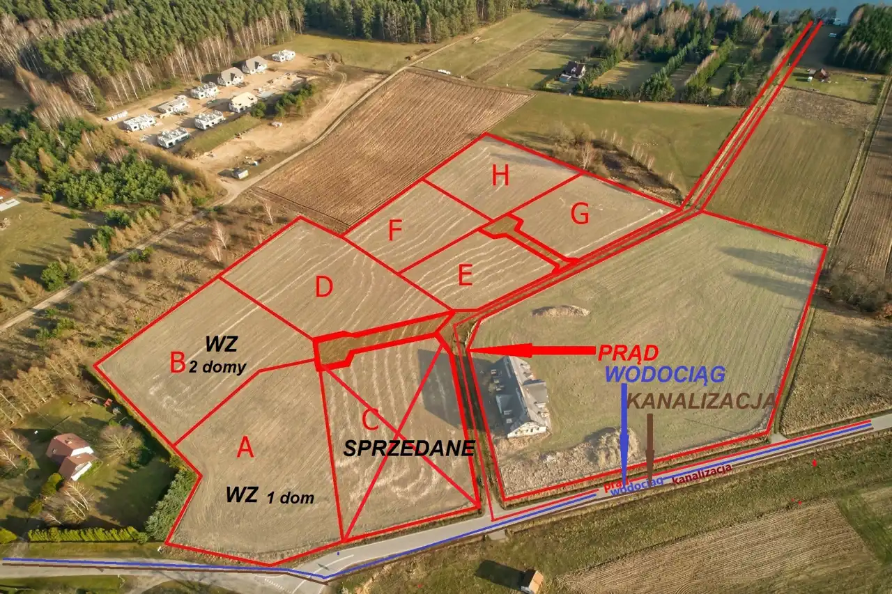- prąd – bezpośrednio przy działkach w drodze wewnętrznej