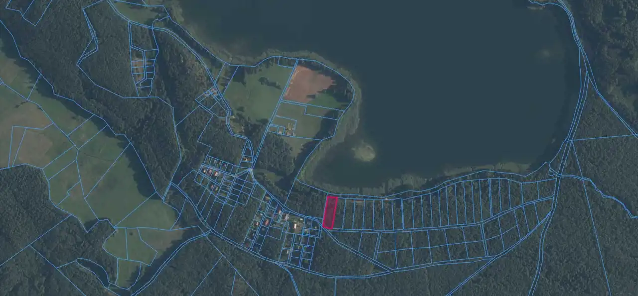 Działka zalesiona z bezpośrednim dostępem do jeziora.
