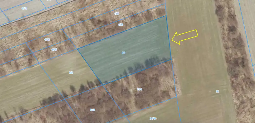 - działka nr. 5/3: ok. 39.73m x 217.69m x 39.74m x 218.52m