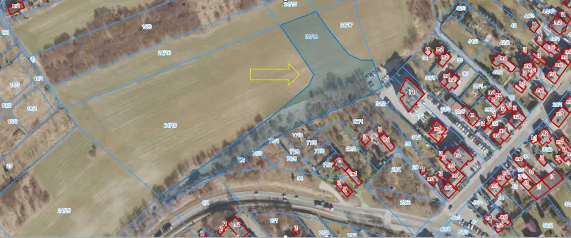- działka nr. 24/18: ok. 36.38m x 93m x 231.14m x 6.46m x 182.8m