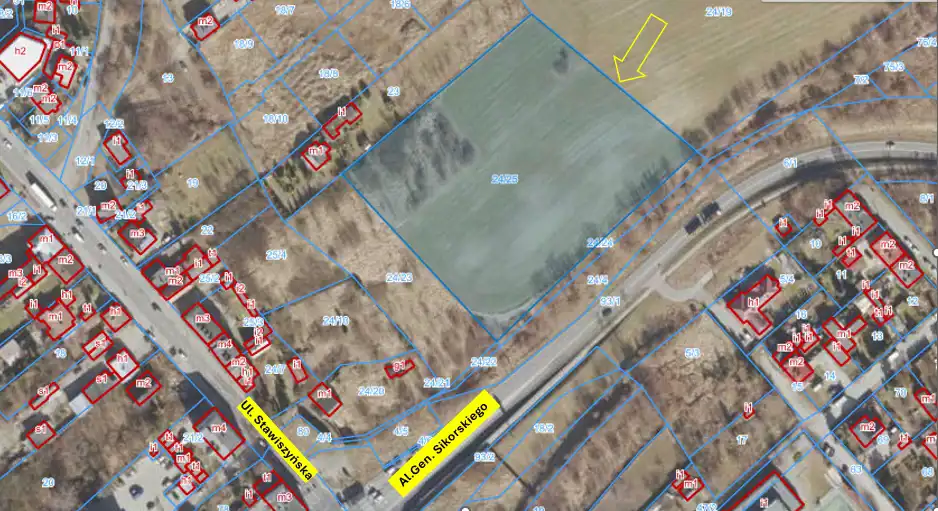 Uzyskana została prawomocna decyzja zatwierdzająca projekt zagospodarowania terenu oraz pozwolenie na budowę na działkę 24/25 z możliwością wybudowania kilkunastu budynków mieszkalnych wielorodzinnych (ca. optymalnie od 30 000 PUM do 36 000 PUM) z garażami podziemnymi, wykorzystując łagodny spadek terenu w stosunku do ul. Stawiszyńskiej.