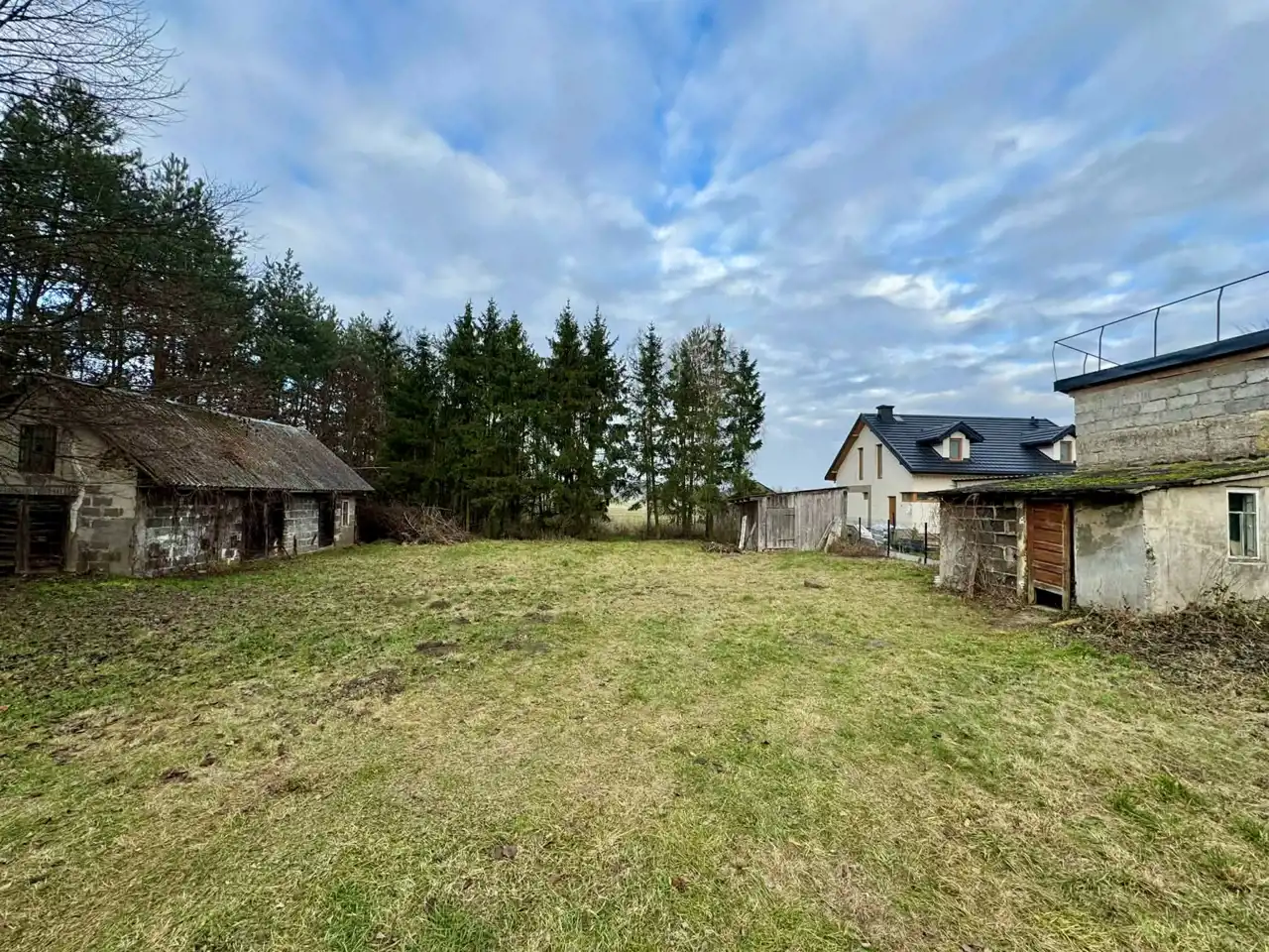 Na terenie siedliska znajdują się trzy budynki z dużym potencjałem adaptacyjnym:- Drewniany dom mieszkalny: 30,36 m²