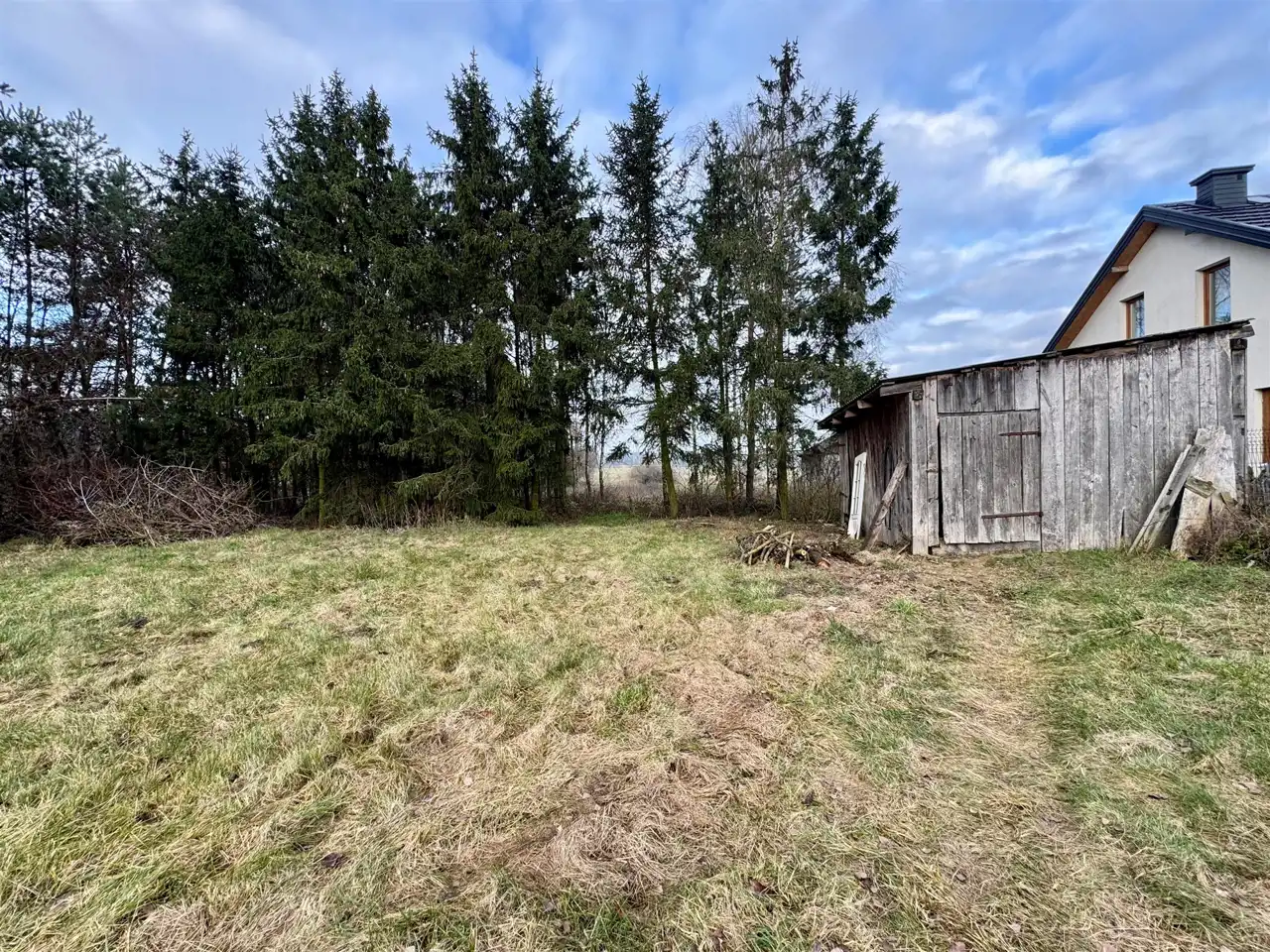 - Media Woda: jest; Kanalizacja: szambo; Prąd: jest; Gaz: brak